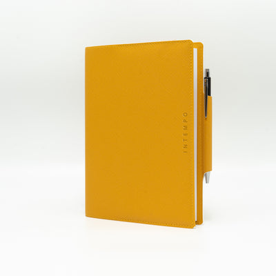 Agenda 12 Mesi Giornaliera 2026 Intempo Saffiano Intercambiabile in Similpelle Rigata Giallo 15 x 21 cm