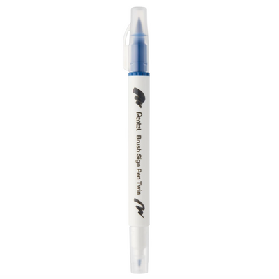 Pennarello a Base Acqua Pentel Brushsign Pen Twin a Doppia Punta Blu