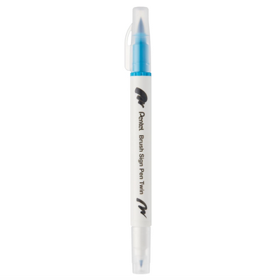 Pennarello a Base Acqua Pentel Brushsign Pen Twin a Doppia Punta Azzurro