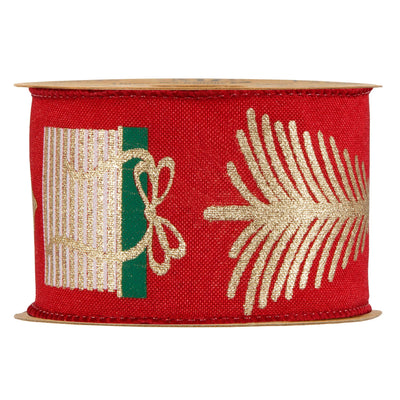 Nastro Alberi & Pacchi Rosso e Oro 63 mm x 10 mt