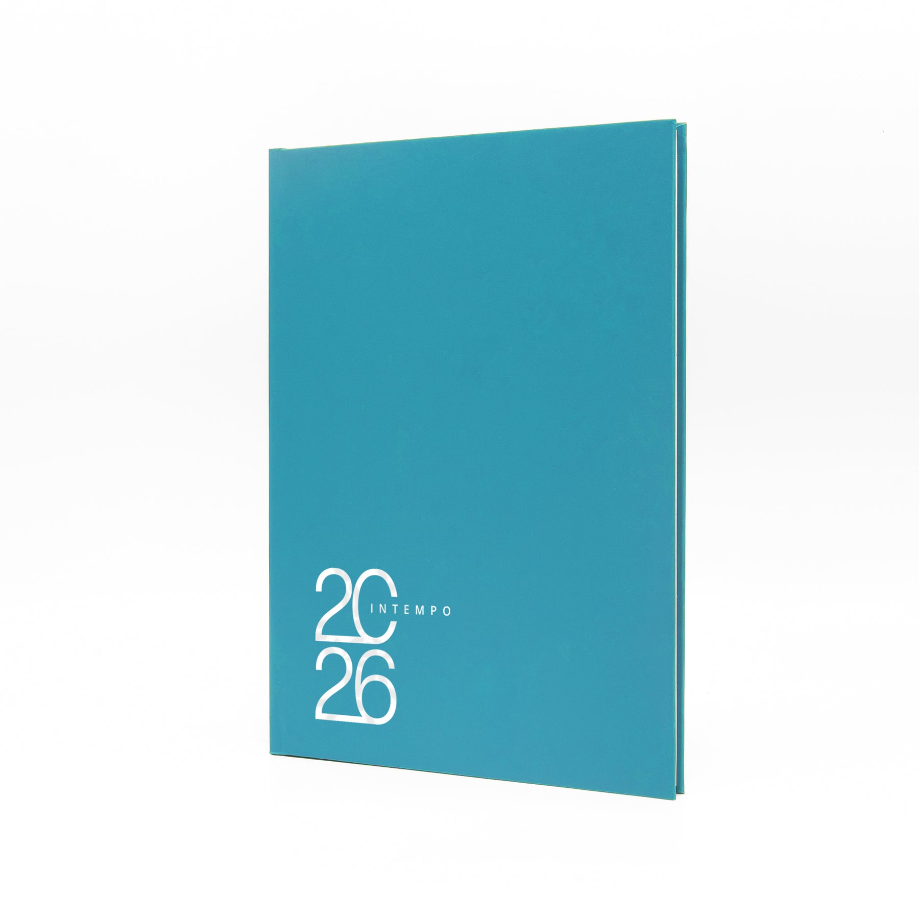 La copertina in Balacron Azzurro opaco conferisce all'agenda un aspetto sofisticato e moderno. La finitura liscia e resistente protegge l'agenda dall'usura quotidiana, mentre la stampa lucida del logo "INTEMPO" e dell'anno "2026" aggiunge un tocco di eleganza. Il colore azzurro, vivace e accattivante, rende questa agenda un accessorio piacevole da portare sempre con sé. Le dimensioni di 17 x 24 cm offrono ampio spazio per scrivere, senza sacrificare la portabilità.