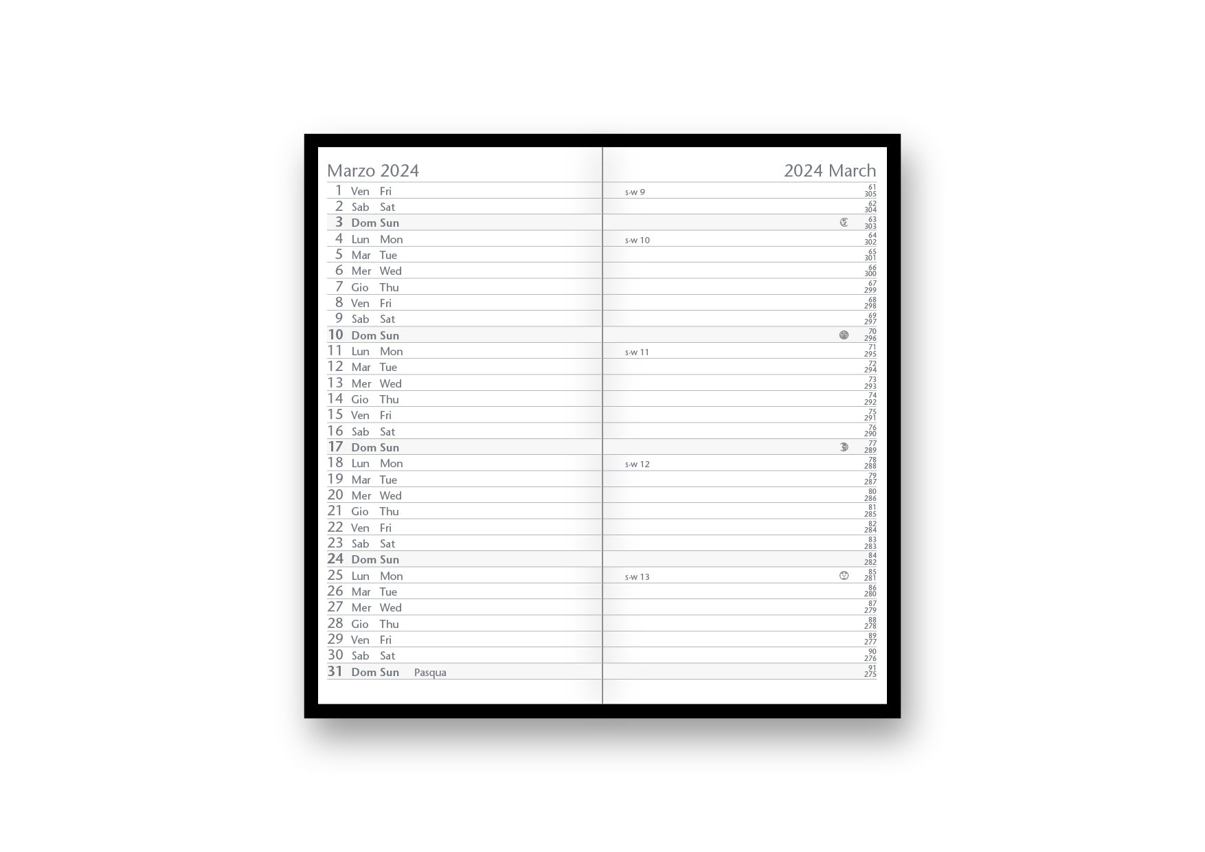 Una delle caratteristiche principali di questa agenda è la sua natura intercambiabile. Grazie al sistema a guaina, è possibile sostituire i fogli interni una volta terminati, permettendo di utilizzare la stessa copertina anno dopo anno. Questo non solo rappresenta un vantaggio economico, ma anche una scelta ecologica, riducendo lo spreco di materiali. L'agenda mensile è pensata per chi ha bisogno di una visione d'insieme dei propri impegni, offrendo una panoramica chiara e organizzata di ogni mese.