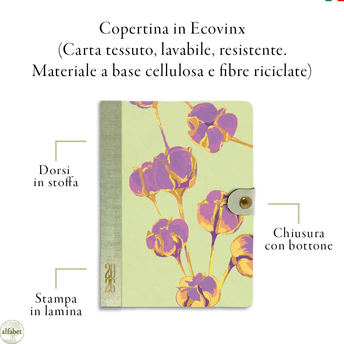 Il cuore dell'innovazione di questa agenda risiede nel materiale EcoVinx, una rivoluzionaria carta tessuto ecologica che ridefinisce gli standard di sostenibilità nel settore della cartoleria. Questo materiale all'avanguardia, realizzato con cellulosa e fibre riciclate post-consumo certificate FSC, offre un aspetto simile alla pelle e al tessuto, garantendo resistenza, lavabilità e durata nel tempo. A differenza dei materiali tradizionali, l'EcoVinx può essere pulito delicatamente con spugna e sapone, proprio come un tessuto pregiato, mantenendo inalterata la sua bellezza originale. La produzione europea certificata FSC assicura il rispetto dei più rigorosi standard ambientali, rendendo questa agenda la scelta ideale per chi non vuole compromessi tra qualità e rispetto per il pianeta. La copertina morbida e flessibile permette un'apertura a 180°, offrendo una visione completa della settimana per una pianificazione ottimale.