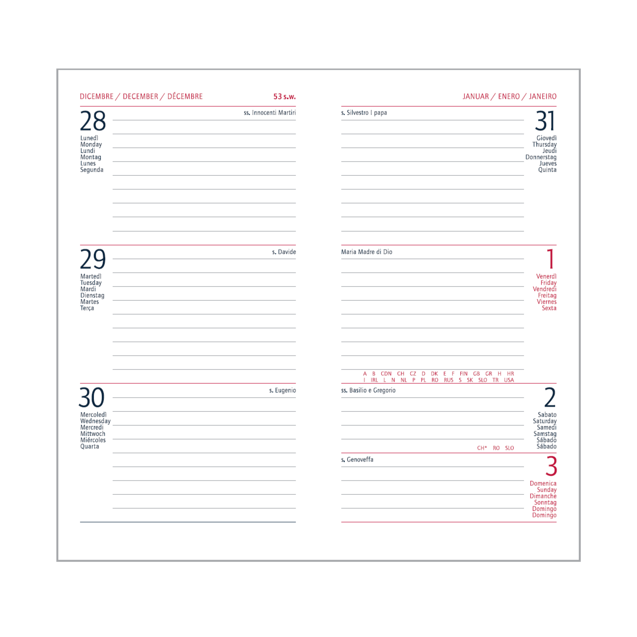 La struttura interna dell'Agenda Settimanale Intempo Bulk 2026 è progettata per ottimizzare la tua pianificazione. La stampa a due colori facilita la distinzione tra le diverse sezioni, permettendoti di individuare rapidamente gli appuntamenti e le note importanti. Ogni pagina offre ampio spazio per annotare impegni, promemoria e pensieri, consentendoti di avere una visione completa della tua settimana. Il formato tascabile rende questa agenda facile da trasportare, permettendoti di averla sempre a portata di mano, sia in ufficio che in viaggio. Grazie alla sua funzionalità e al suo design intuitivo, l'Agenda Settimanale Intempo Bulk 2026 ti aiuterà a gestire il tuo tempo in modo efficiente e senza stress.