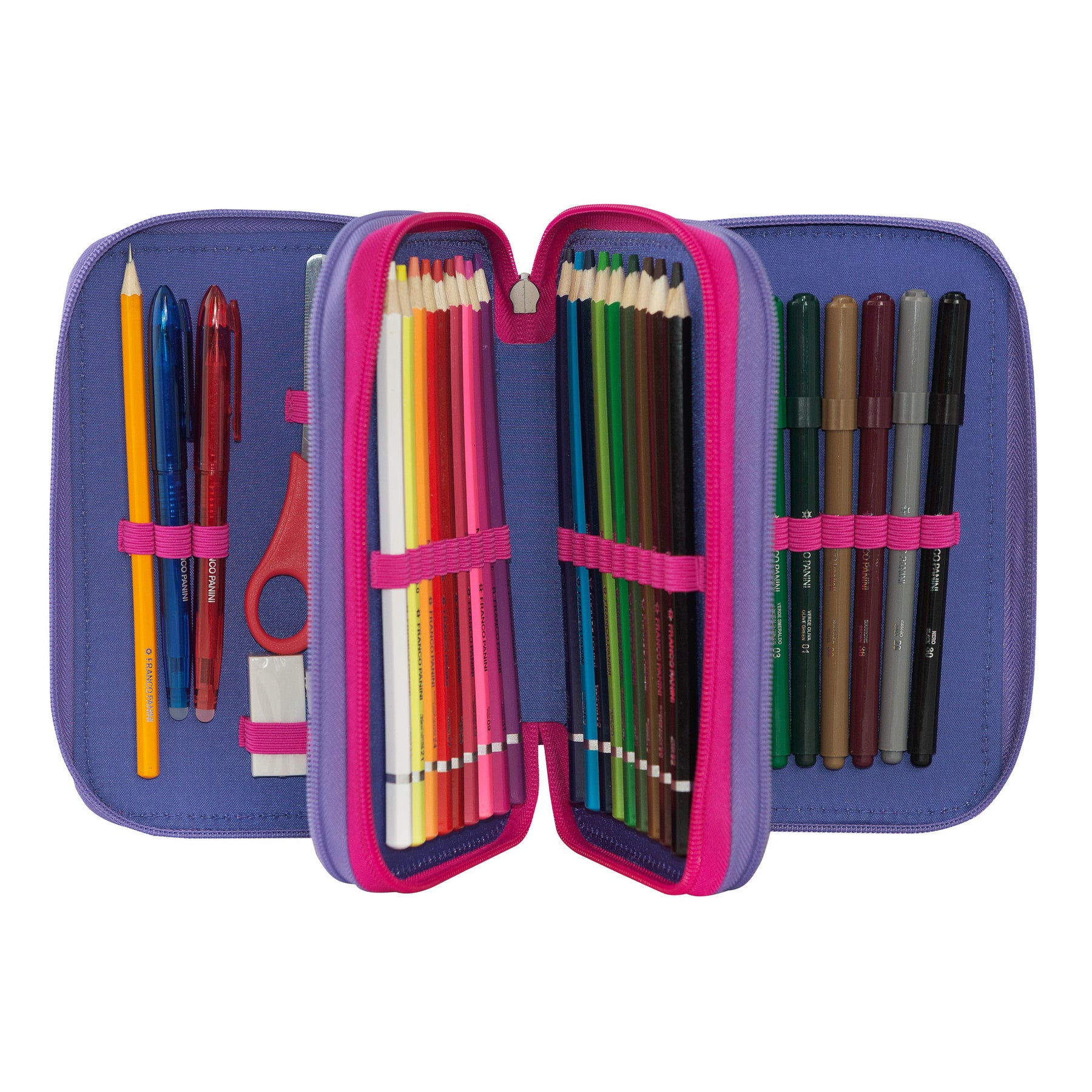 Il colore viola predominante e la grafica del koala rendono questo astuccio WWF un must-have per i giovani studenti appassionati di natura. La chiusura a 3 zip garantisce la sicurezza del contenuto, mentre i tre scomparti permettono di organizzare efficacemente penne, matite e altri strumenti.