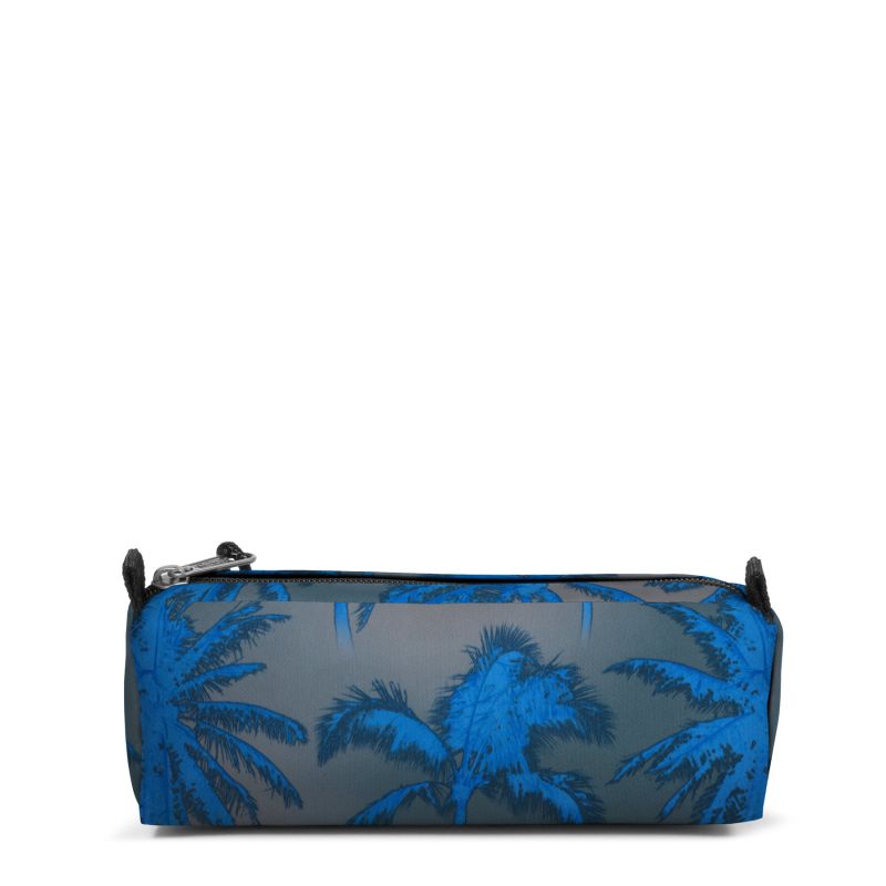 Realizzato in 100% poliestere, l'Eastpak Benchmark Single offre una protezione affidabile contro l'umidità, salvaguardando i tuoi accessori scuola in ogni situazione. Il design Brize Dye Grey presenta un motivo tropicale con palme stilizzate in tonalità blu su sfondo grigio, conferendo un tocco di freschezza e modernità al tuo corredo scolastico.