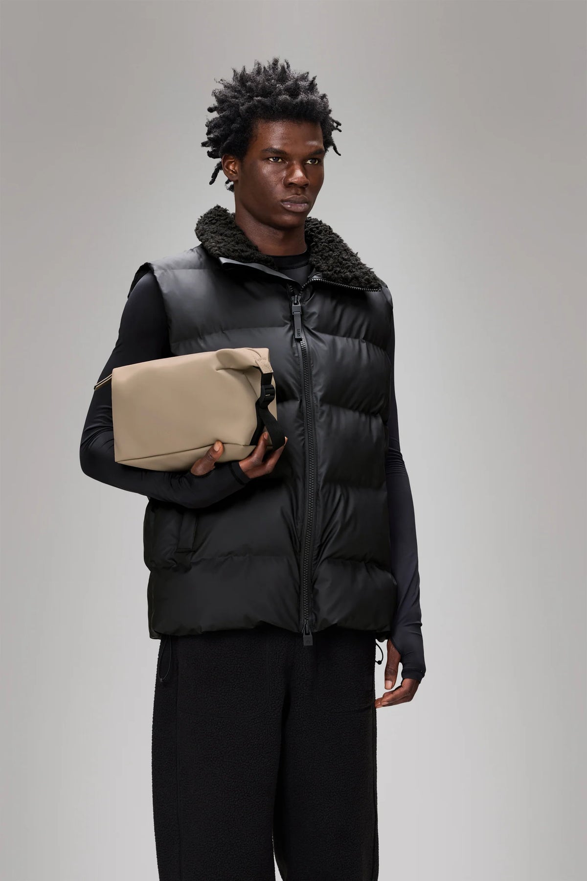 La Hilo Wash Bag di Rains si distingue per il suo design minimalista e sofisticato. Il colore beige, elegante e versatile, si adatta perfettamente a qualsiasi stile di viaggio. Realizzata in tessuto PU impermeabile, questa borsa da viaggio offre una protezione ottimale contro l'umidità e gli schizzi, mantenendo i tuoi prodotti asciutti e al sicuro. La superficie liscia al tatto non solo è piacevole, ma anche facile da pulire, garantendo una lunga durata nel tempo.