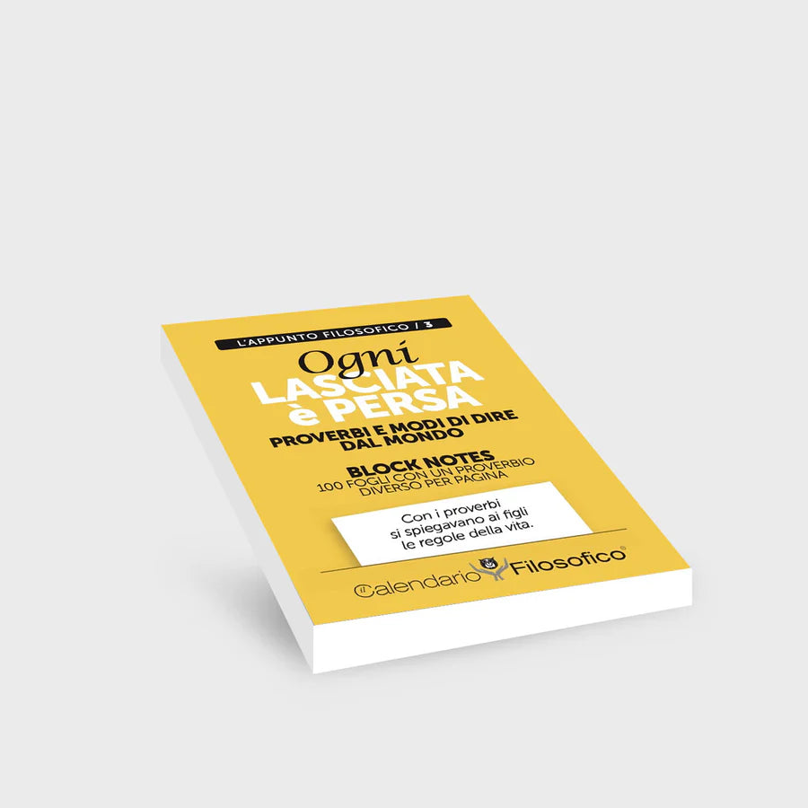 Non accontentarti di un semplice quaderno: scegli il Blocco Note Appunto Filosofico Giallo e trasforma ogni annotazione in un momento di ispirazione. Con il suo design accattivante, i suoi proverbi saggi e la sua praticità, questo Blocco Note diventerà presto il tuo compagno inseparabile. Ordina subito il tuo Blocco Note Filosofico e inizia a dare forma ai tuoi pensieri con stile e saggezza!