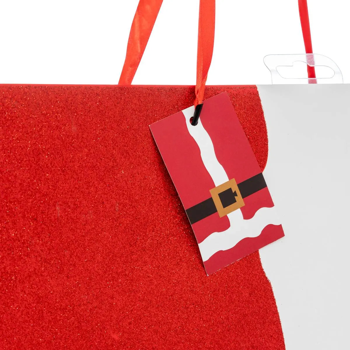 Il design della borsa regalo Natale di Giustacchini è un vero e proprio omaggio alla tradizione natalizia. Il colore rosso e bianco, immediatamente riconoscibile, evoca l'immagine iconica di Babbo Natale, portando con sé un senso di calore e festa. I dettagli bianchi, che richiamano la cintura e il bordo del vestito di Babbo Natale, aggiungono un tocco di eleganza e raffinatezza al design complessivo. Ma ciò che rende davvero speciale questa borsa è il glitter rosso che ne impreziosisce la superficie, creando un effetto scintillante che cattura lo sguardo e aggiunge un tocco di magia.