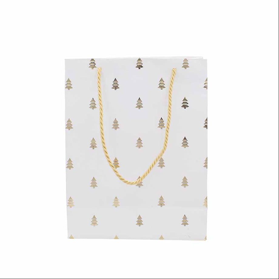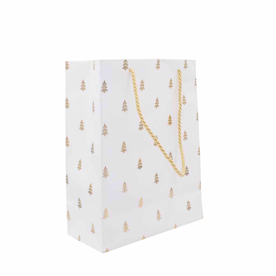 - Fondo bianco con stampa oro a motivo di alberelli di Natale