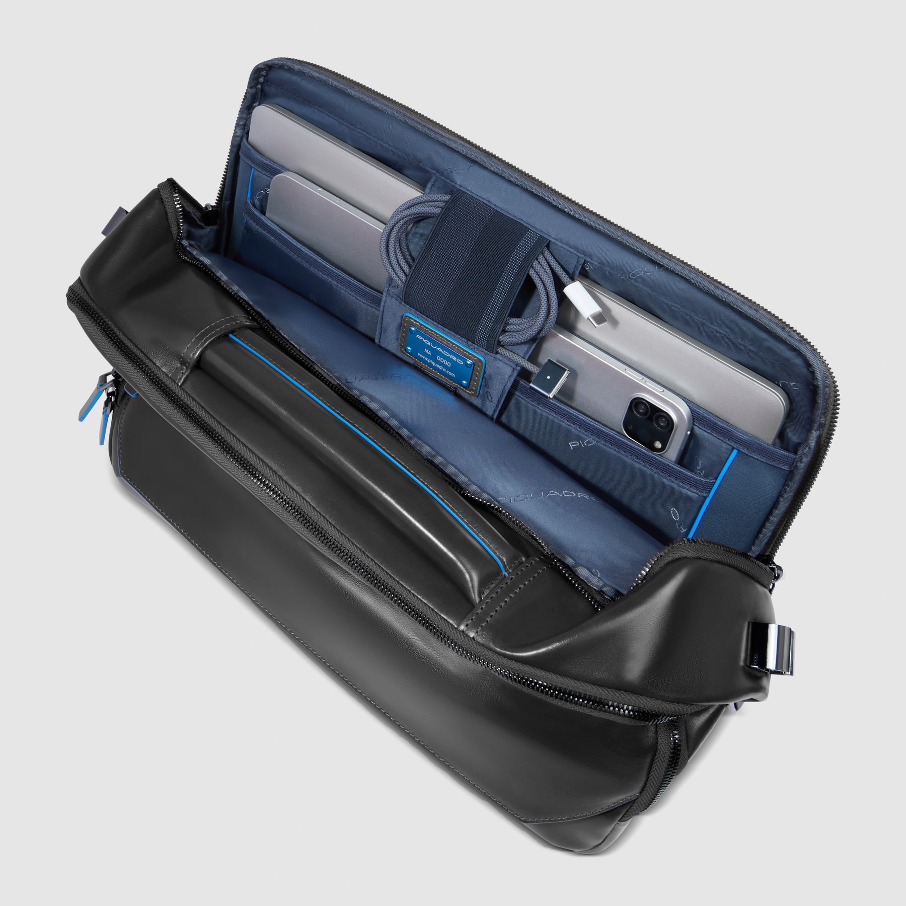 Ma l'eleganza non è tutto. La Piquadro Blue Square è progettata per offrire la massima funzionalità. La chiusura con zip garantisce la sicurezza dei tuoi oggetti personali, mentre il manico robusto assicura un trasporto comodo e pratico. All'interno, gli scomparti specifici per laptop e iPad da 12,9 pollici proteggono i tuoi dispositivi da urti e graffi, mentre le tasche aggiuntive ti permettono di organizzare al meglio accessori, documenti e altri oggetti essenziali. Ogni dettaglio è studiato per semplificare la tua vita professionale, permettendoti di concentrarti su ciò che conta davvero.