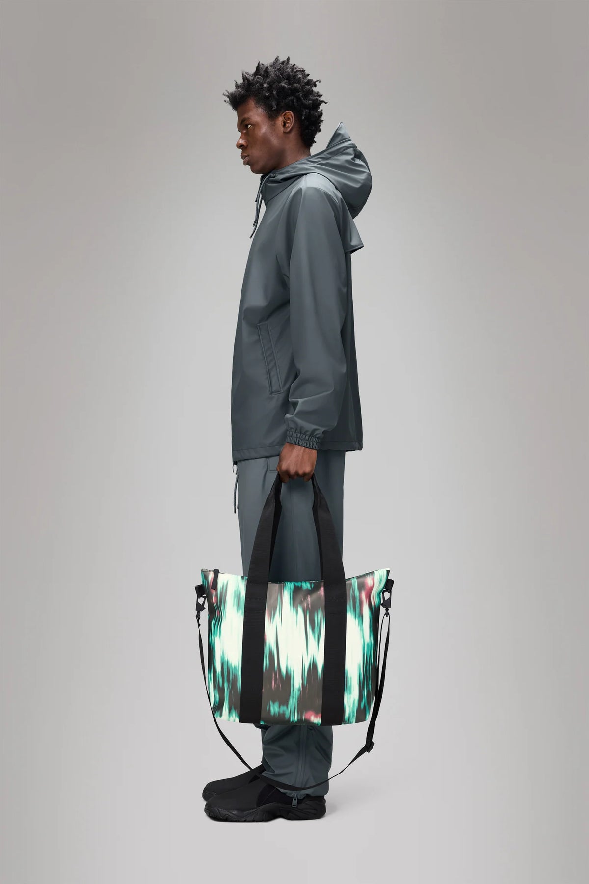 La Borsa RAINS Tote Bag Mini non è solo pratica e funzionale, ma anche un vero e proprio accessorio di moda. Il suo design moderno e minimalista si adatta perfettamente a qualsiasi outfit, dal più casual al più elegante. Il motivo sfumato in tonalità di verde, nero e accenti di rosso aggiunge un tocco di originalità e personalità, rendendola un accessorio unico e distintivo.