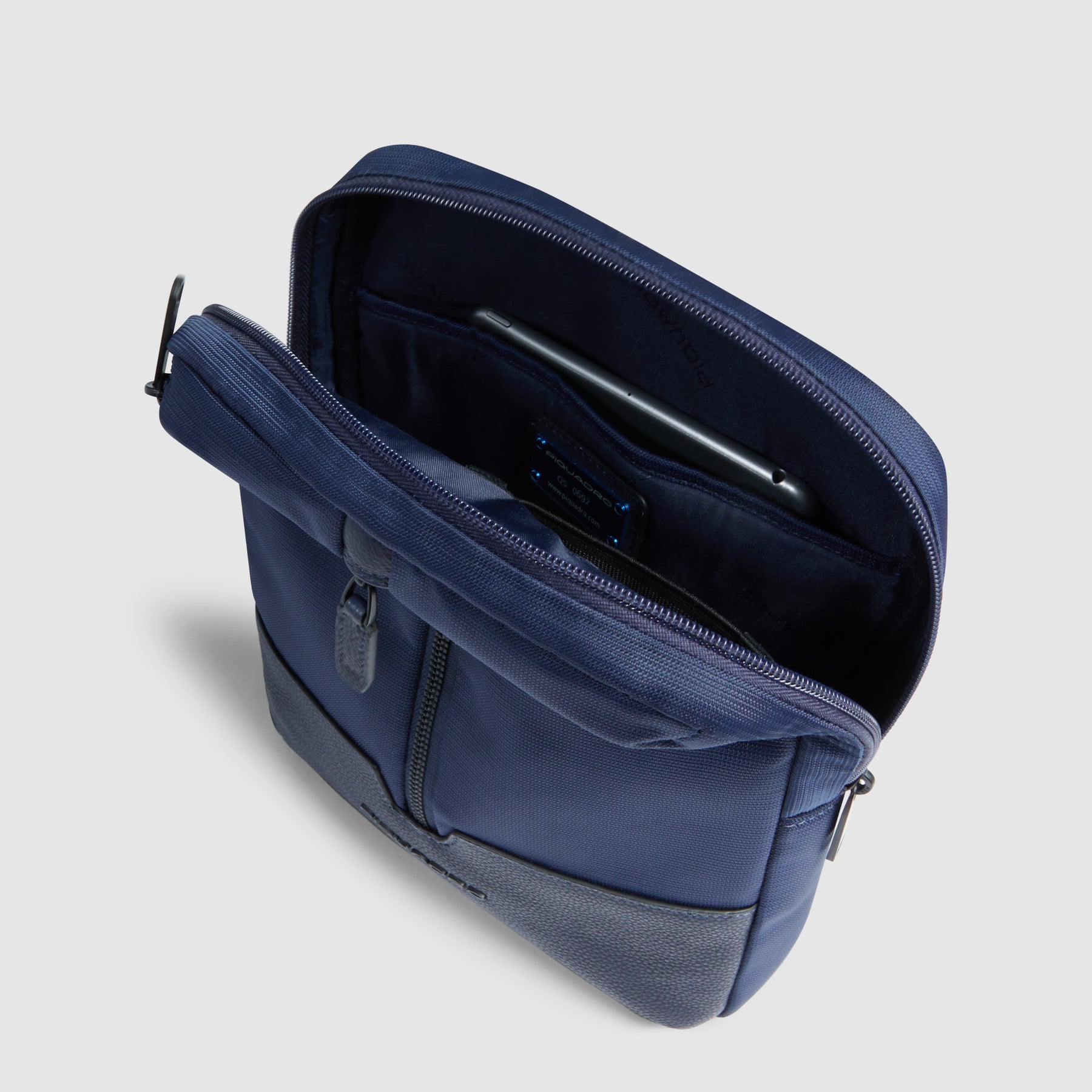 Il Piquadro Marcel non è solo bello, ma anche estremamente funzionale. Il comparto interno imbottito è specificamente progettato per ospitare un iPad 11", proteggendolo da urti e graffi durante il trasporto. La tasca laterale con chiusura a zip e la tasca frontale verticale offrono ulteriore spazio per riporre smartphone, portafogli, chiavi e altri oggetti essenziali, mantenendoli organizzati e facilmente accessibili. La maniglia superiore, comoda e resistente, consente di trasportare il borsello a mano, mentre la tracolla in tessuto rimovibile offre la possibilità di portarlo a spalla o a tracolla, a seconda delle tue preferenze. Il sistema di chiusura con tirante in pelle aggiunge un tocco di eleganza e praticità.