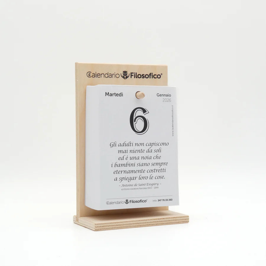 FILOSOFICO Calendario Filosofico 2026 A6 con Supporto in Legno Frasi Uniche