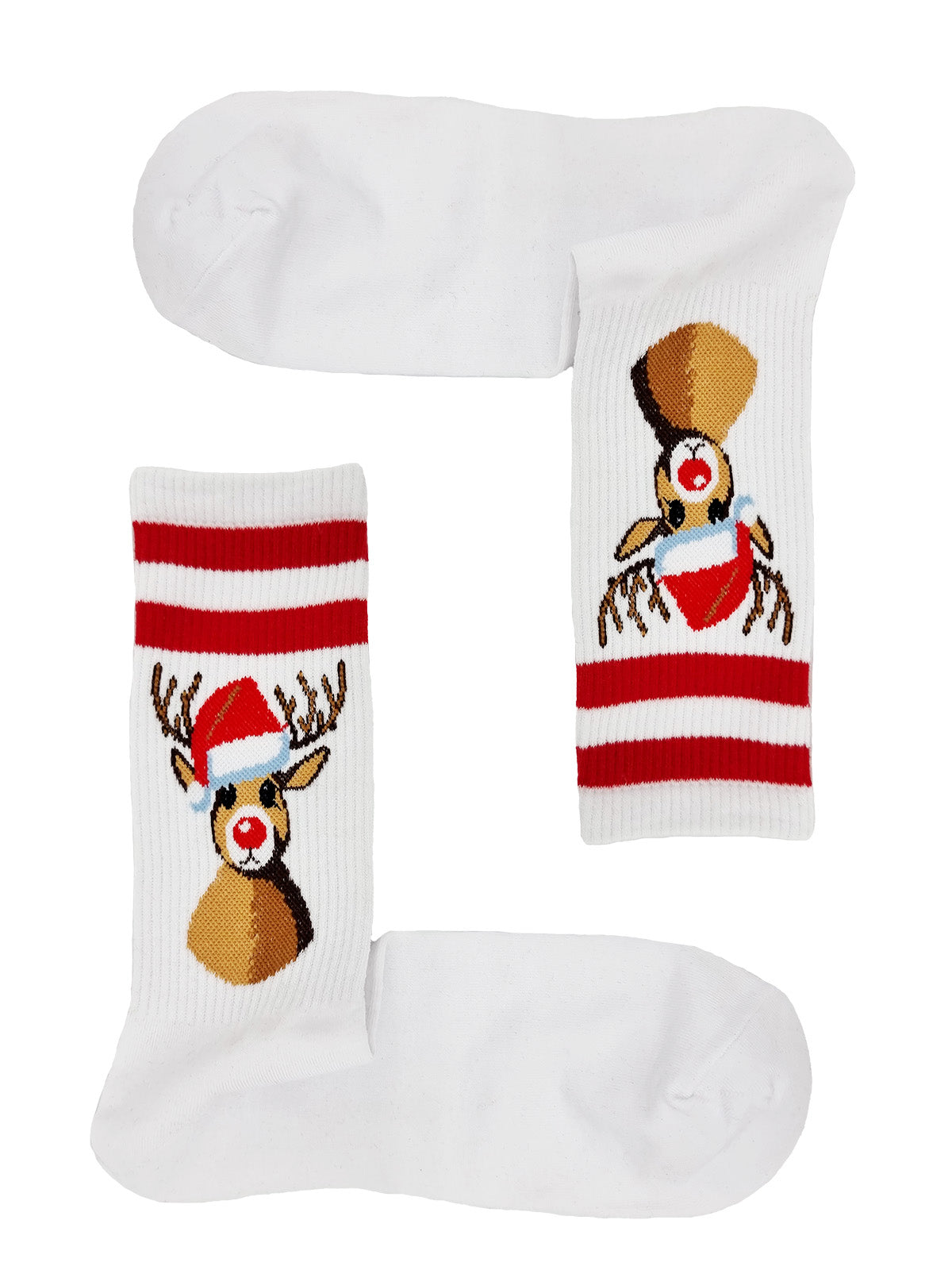 Giustacchini: Calze Natalizie Unisex Rudolph Bianco/Rosso Taglia 36-40 Cotone