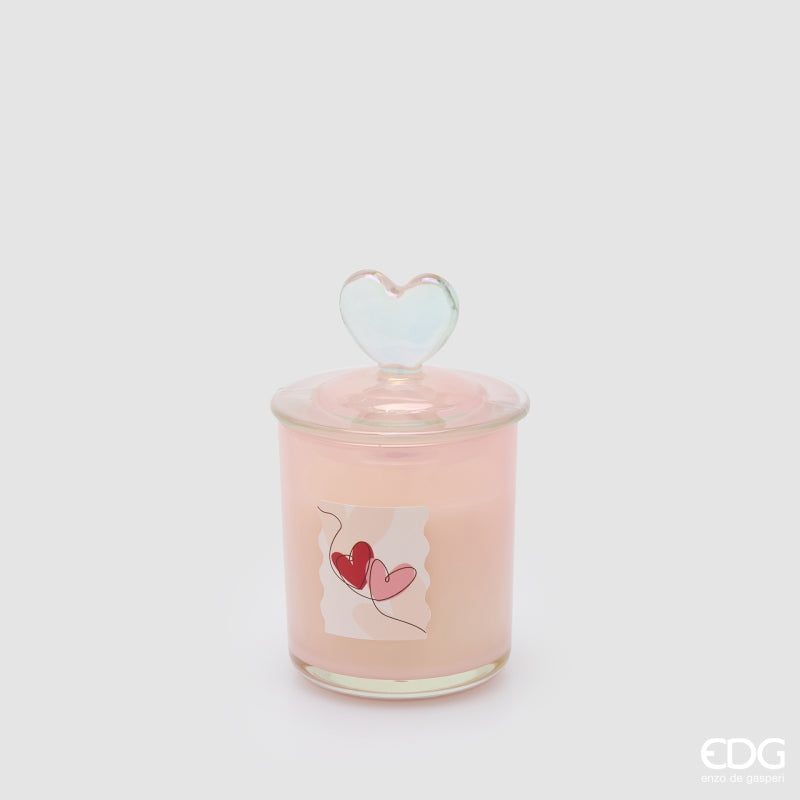 Realizzata con cura artigianale dal prestigioso marchio EDG, questa candela è molto più di un semplice complemento d'arredo: è un vero e proprio elemento decorativo che unisce bellezza visiva e esperienza sensoriale. Il contenitore in vetro trasparente permette di ammirare la cera colorata all'interno, mentre il coperchio decorato con un delizioso pomello a forma di cuore aggiunge un tocco di tenerezza e romanticismo che la rende irresistibile.