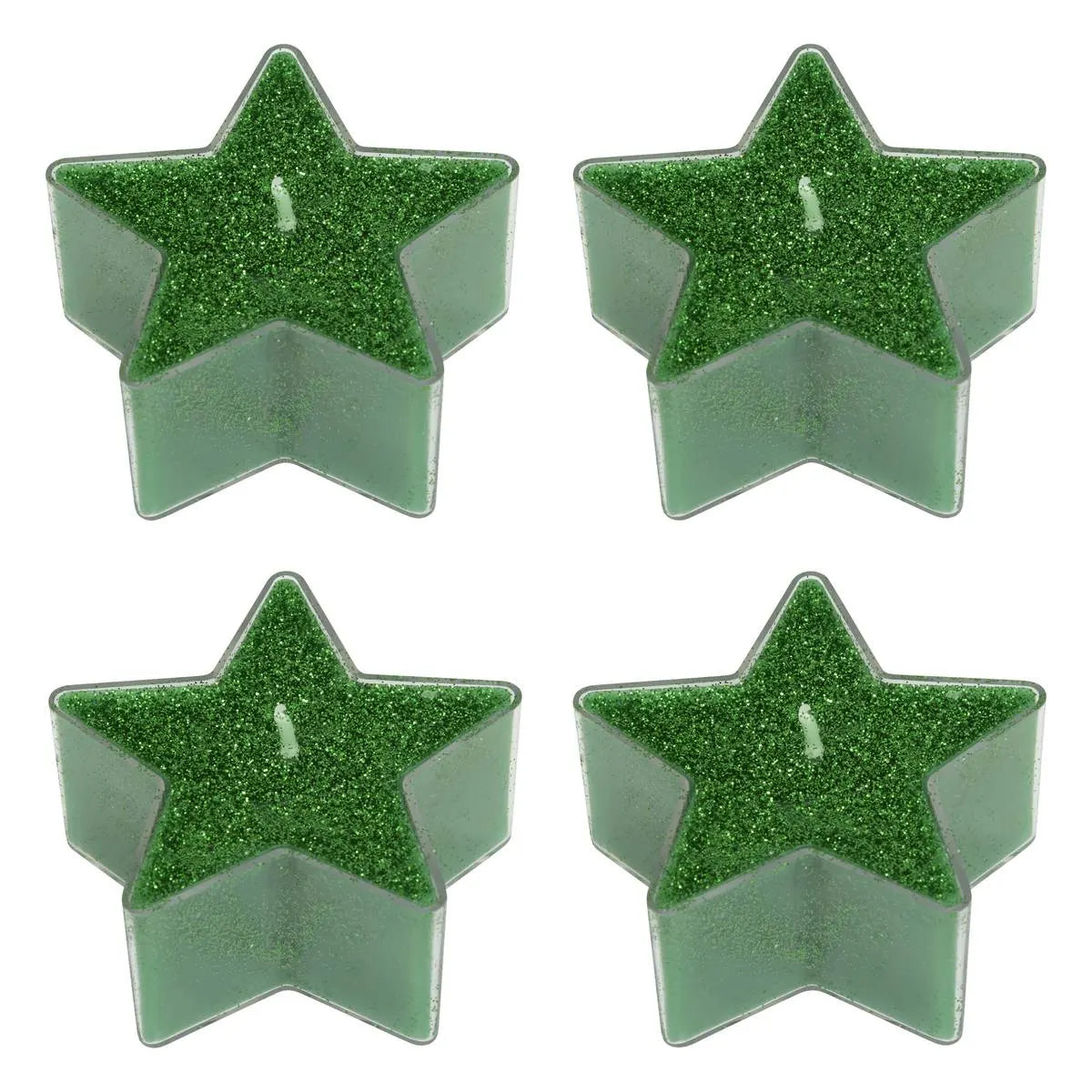 Giustacchini: Set 4 Candele Tealight Stella Glitter Verde, Diametro 6 cm
