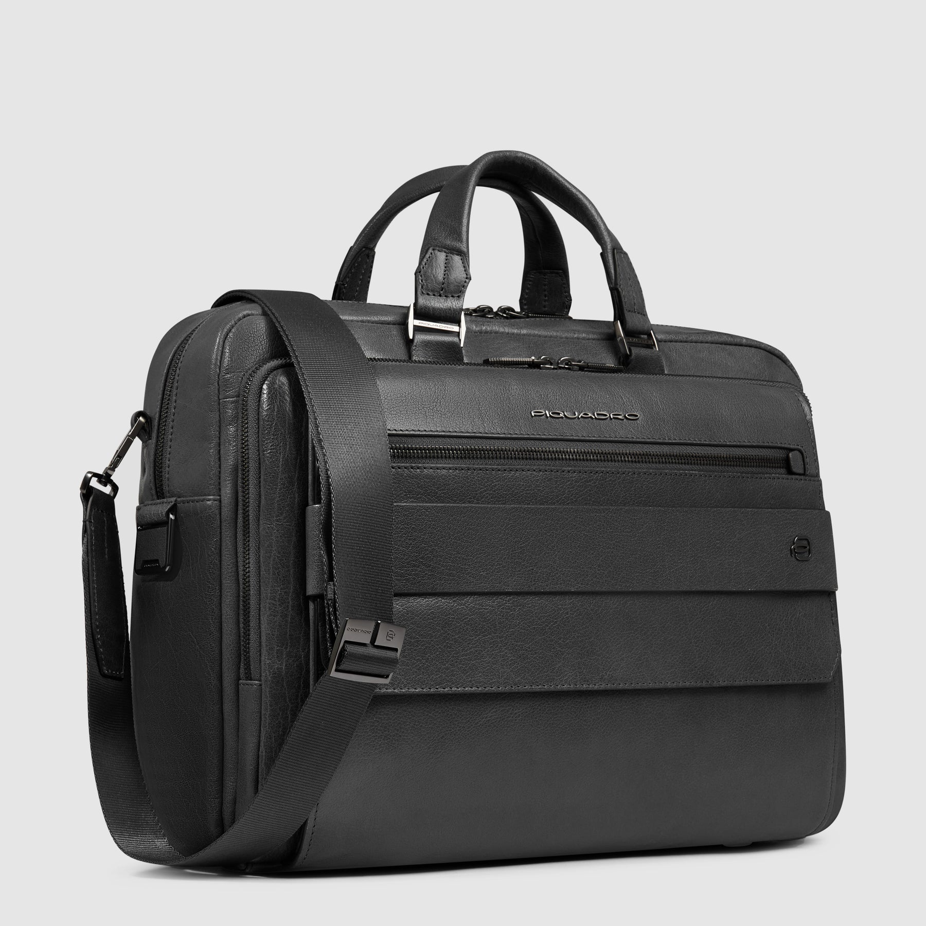 La Cartella a 2 Manici Piquadro Solm rappresenta la soluzione ideale per professionisti, manager e studenti universitari che necessitano di trasportare con eleganza e sicurezza il proprio laptop e documenti importanti. Questa borsa per laptop in pelle nera combina perfettamente stile raffinato e funzionalità avanzate, risolvendo il problema comune di chi cerca un accessorio che sia al contempo professionale e altamente organizzato. Perfetta per chi lavora in ambito aziendale, consulenza o per studenti di master e corsi post-laurea, questa cartella si distingue per la sua capacità di proteggere dispositivi tecnologici mantenendo un'estetica impeccabile.