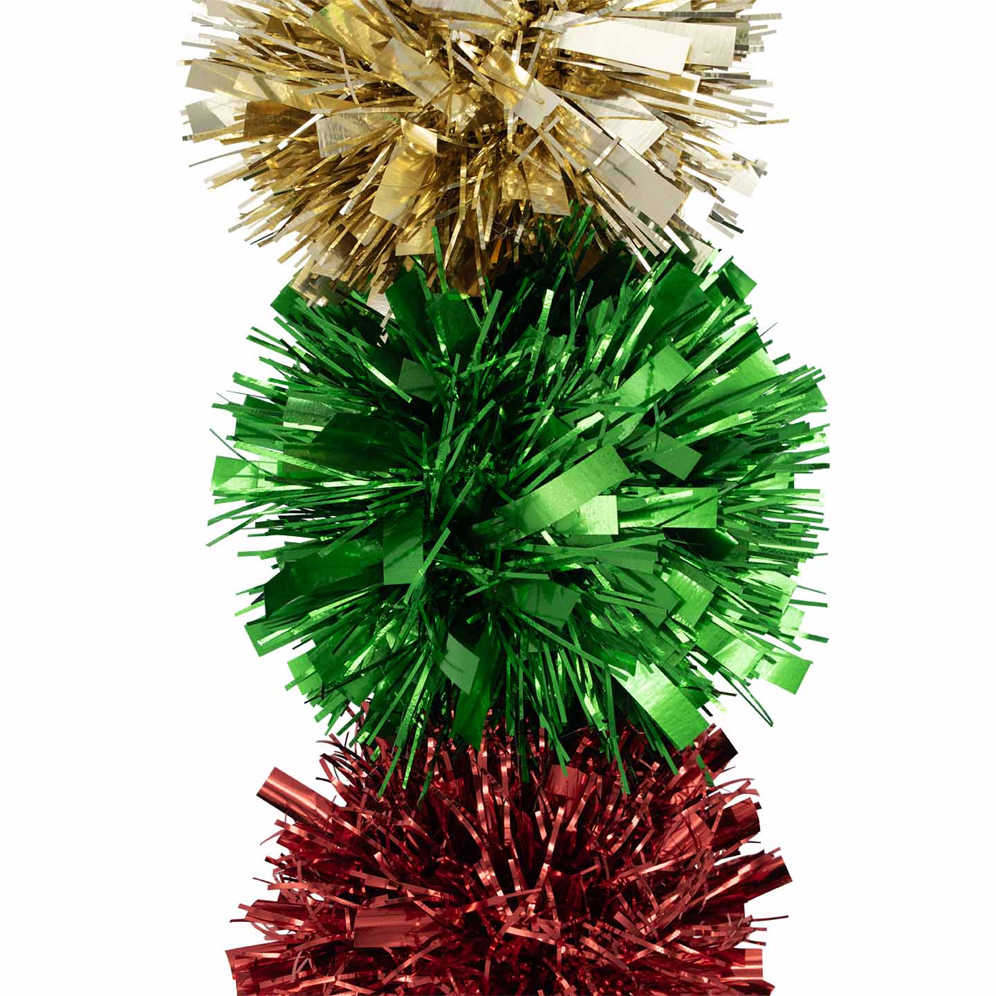 La maestria artigianale di Giustacchini si manifesta in ogni dettaglio di questo stella pom pon decorativo. I tre pompon sono realizzati in materiale sintetico lucido di alta qualità, caratterizzato da una texture brillante e riflettente che cattura e riflette la luce in modo spettacolare. Questa scelta materica non è casuale: la superficie lucida conferisce profondità cromatica ai colori rosso, verde e oro, creando un effetto tridimensionale che dona vita e movimento all'accessorio. La densità e la consistenza dei pompon testimoniano un processo produttivo attento, dove ogni elemento è assemblato con precisione per garantire resistenza e durata nel tempo. La struttura solida e ben definita assicura che il prodotto mantenga la sua forma originale anche dopo ripetuti utilizzi, rappresentando un investimento duraturo per chi ama curare ogni aspetto della presentazione dei propri regali.