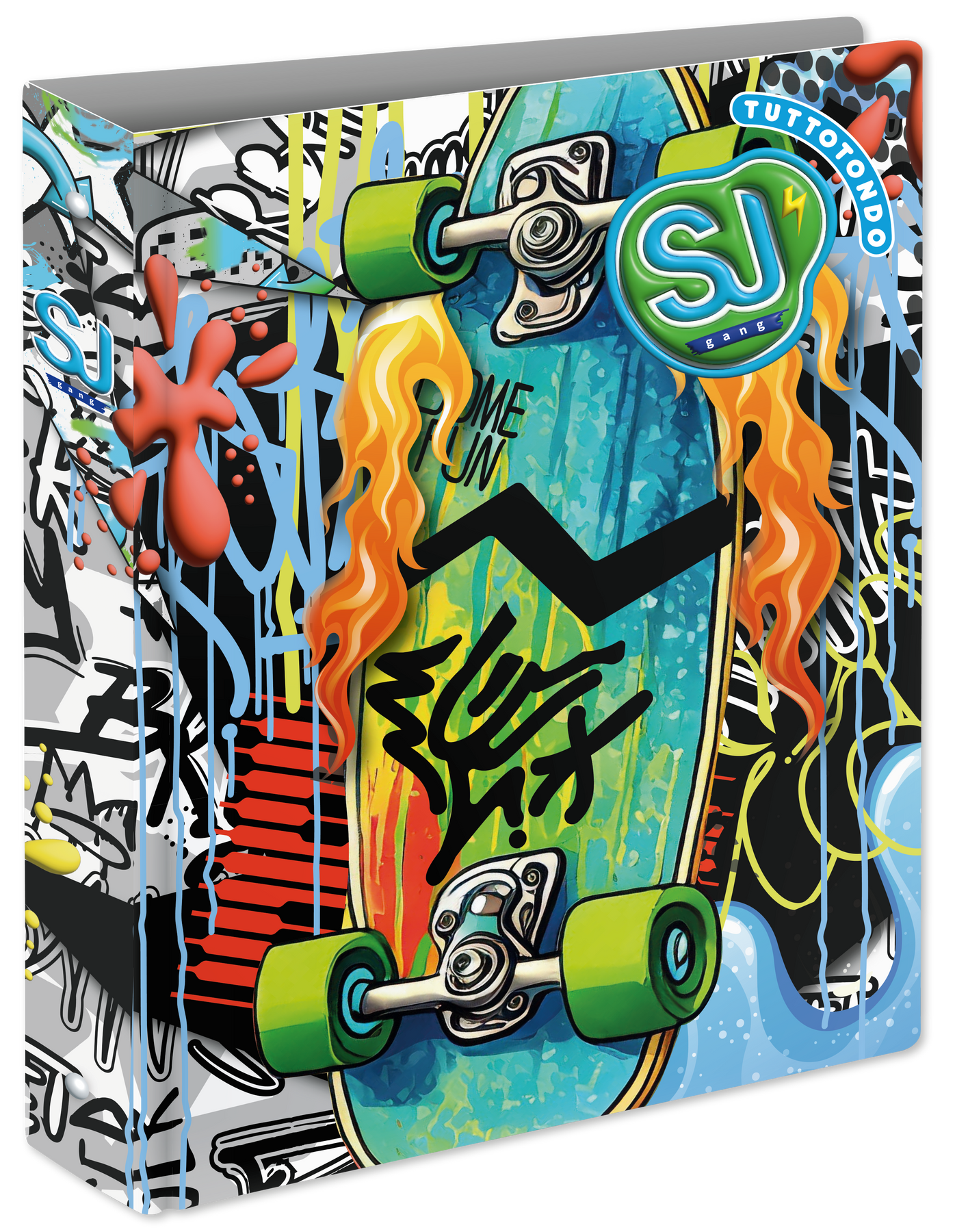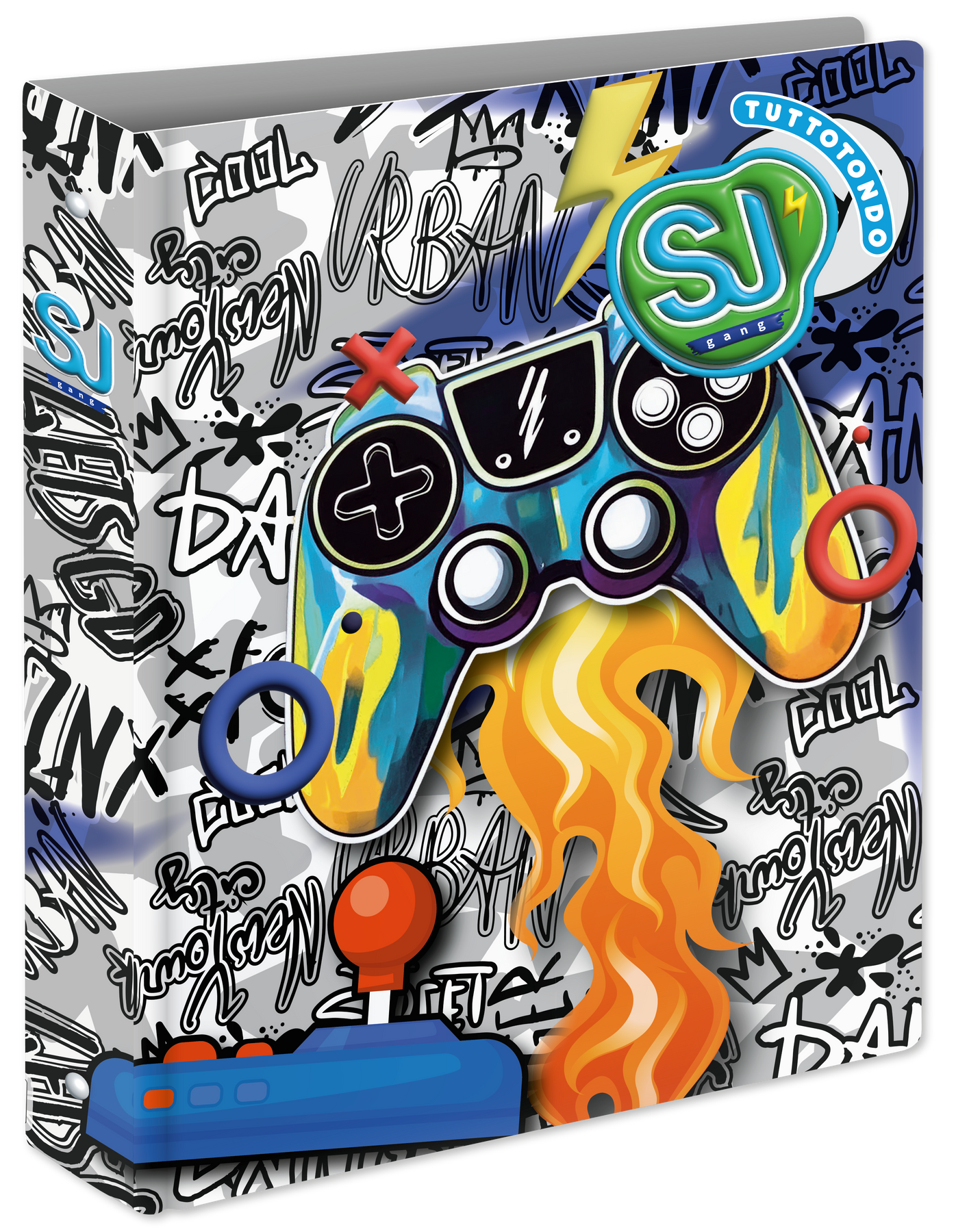 Caratterizzata da una grafica vivace e accattivante, la copertina presenta motivi ispirati al gaming, come controller e simboli dinamici, che richiamano un'atmosfera urbana e contemporanea. Questi elementi grafici non sono solo decorativi, ma riflettono la passione e l'energia dei giovani studenti, rendendo l'organizzazione dei propri materiali un'attività piacevole e personale.