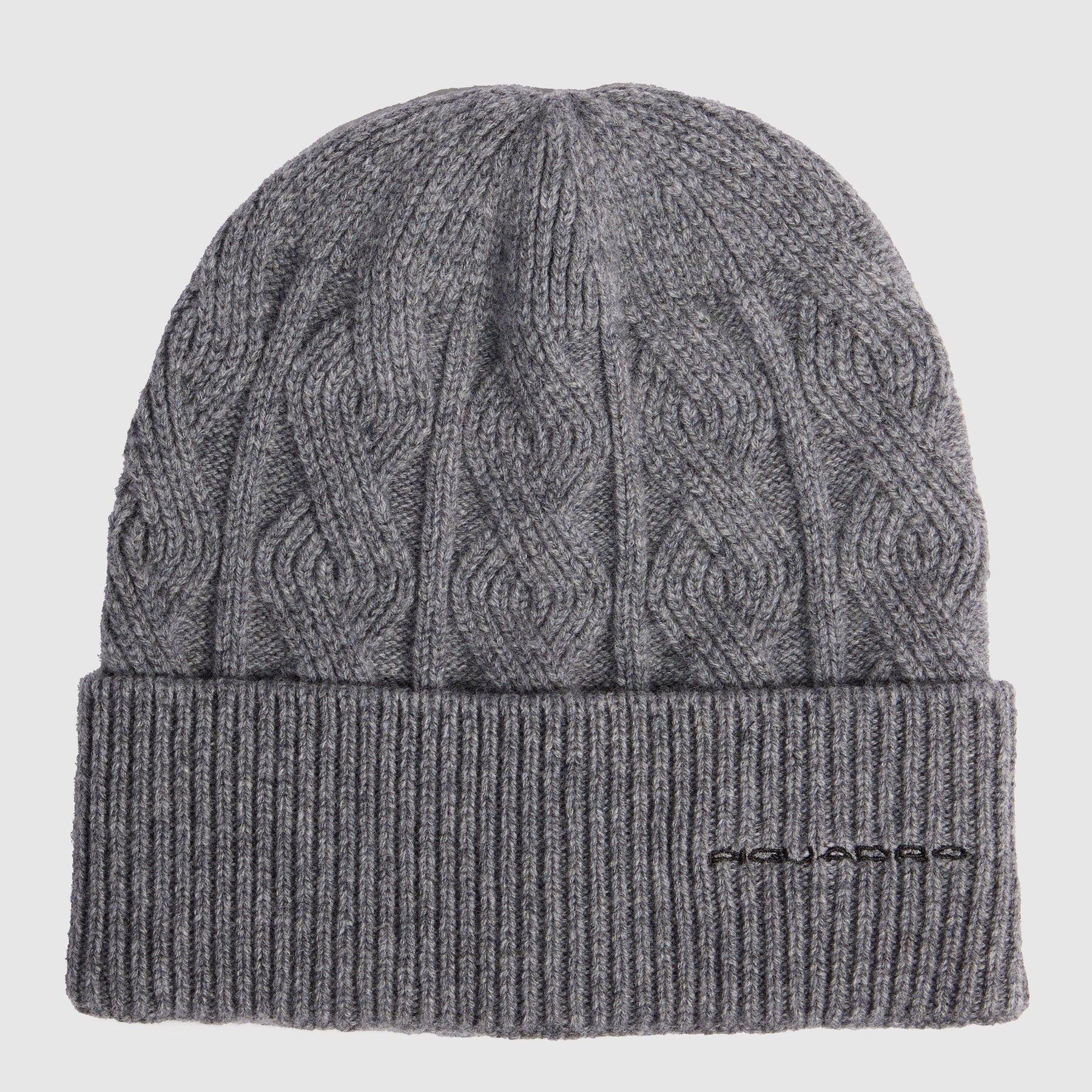 Cuffia Piquadro Uomo 100% Lana Grigia Made in Italy Taglia Unica