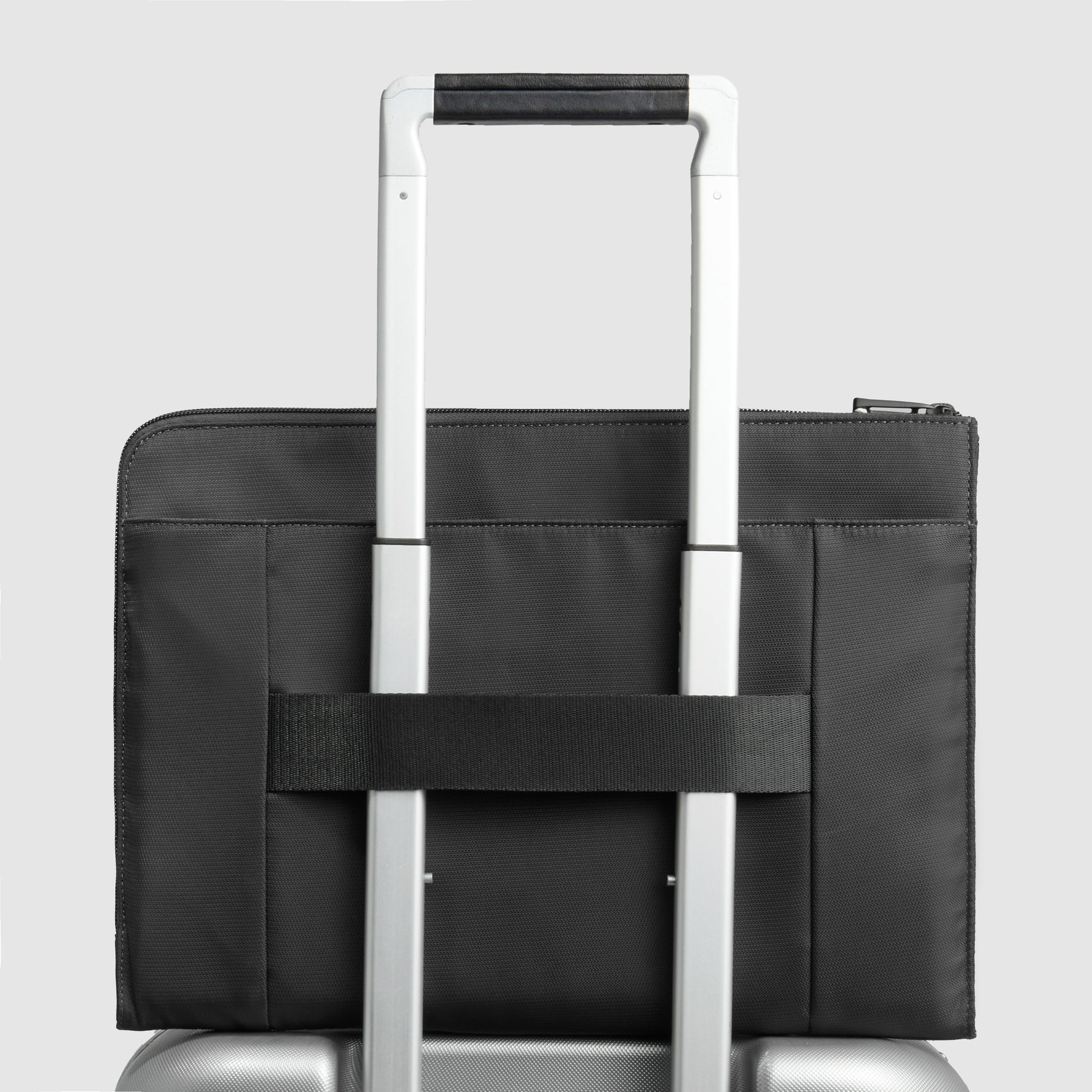 Questa custodia iPad 12.9'' non è solo bella da vedere, ma anche incredibilmente pratica. I manici a scomparsa offrono una doppia funzionalità: puoi trasportarla comodamente a mano oppure riporla facilmente in una borsa o uno zaino da lavoro. La fascia posteriore permette di agganciarla al trolley, rendendola l'alleata perfetta per i tuoi viaggi d'affari. La chiusura con zip robusta assicura che il tuo iPad rimanga al sicuro all'interno, mentre le tasche esterne offrono spazio aggiuntivo per piccoli oggetti come cavi, penne o il tuo smartphone. La Custodia iPad 12.9'' Piquadro Wollem Nero è pensata per semplificare la tua vita, offrendoti una soluzione elegante e funzionale per trasportare il tuo dispositivo in tutta sicurezza. Per chi cerca una soluzione completa per la protezione e il trasporto del proprio iPad, questa custodia rappresenta un investimento intelligente e duraturo.