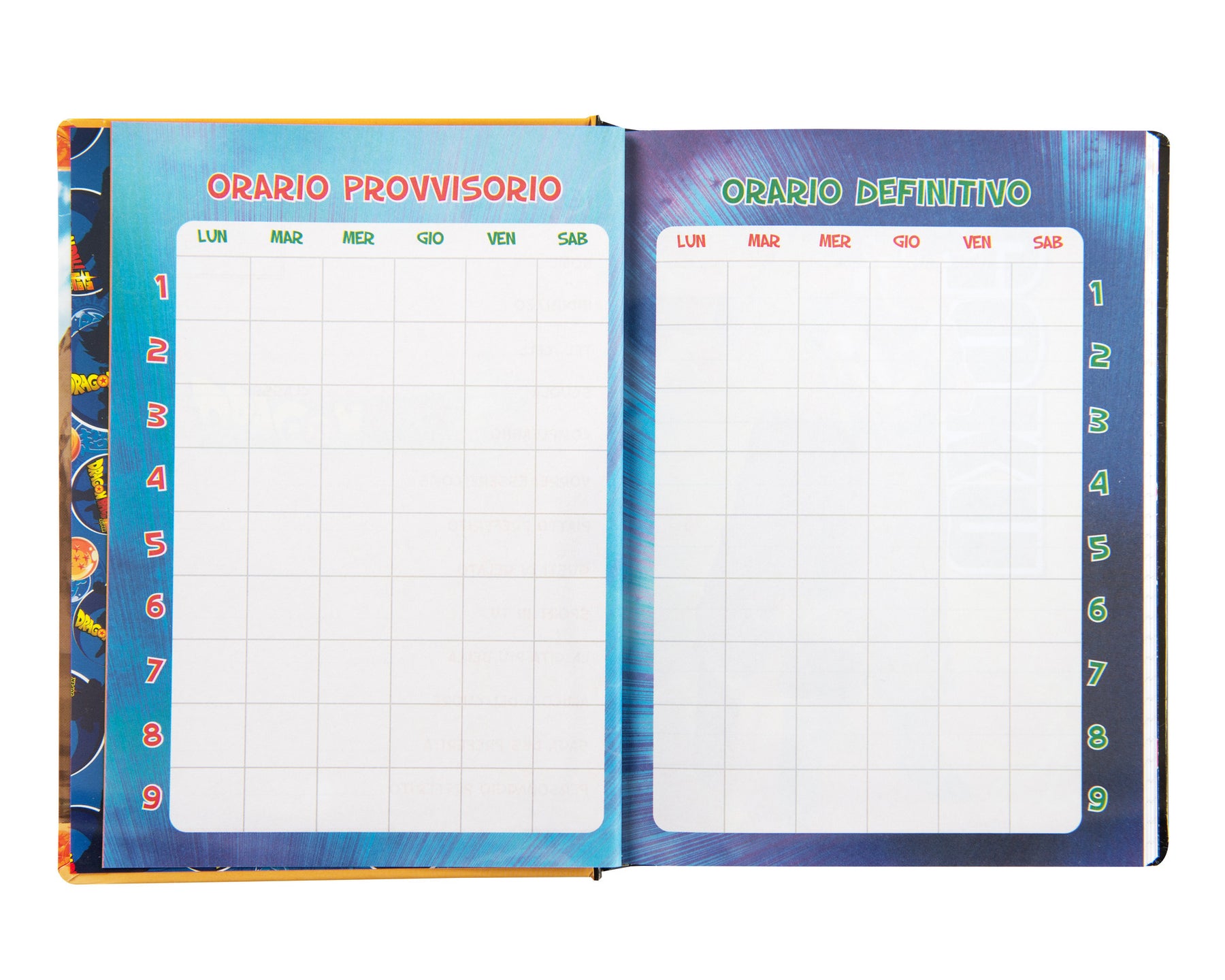 Caratterizzato da una copertina rigida e imbottita, questo diario offre una resistenza superiore, garantendo durabilità nel corso dell'intero anno scolastico. Il design vivace e accattivante della copertina presenta i personaggi iconici di Dragon Ball Super, tra cui Goku e Vegeta, catturati in pose dinamiche che riflettono l'energia e l'azione della serie.