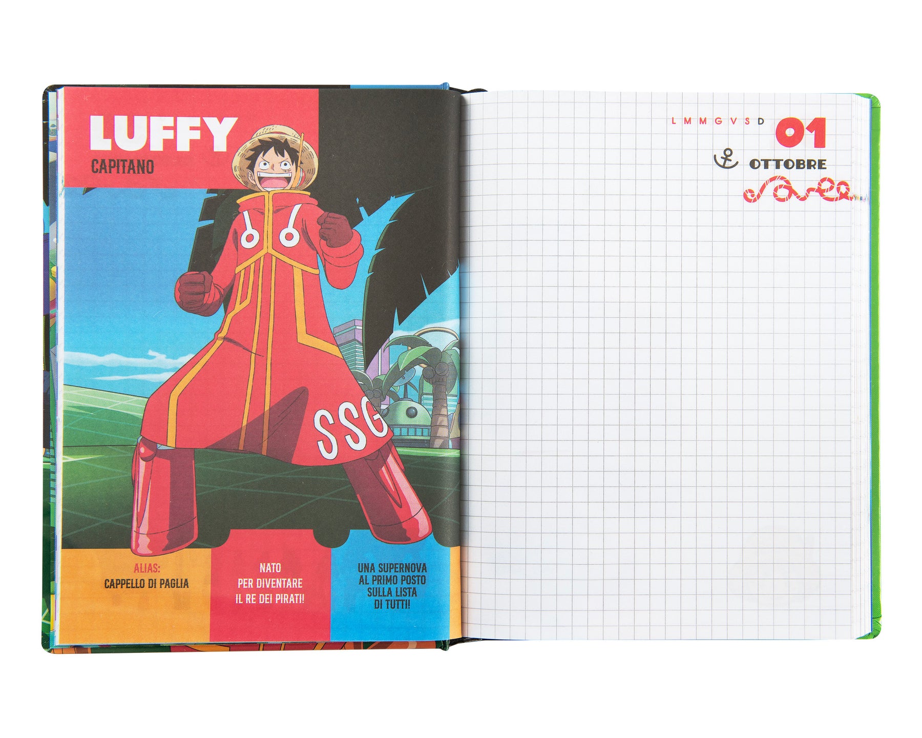 Il design vivace della copertina non è solo un piacere per gli occhi, ma serve anche come fonte di ispirazione quotidiana. Ogni volta che aprirete il diario, sarete accolti dai vostri personaggi preferiti di One Piece, pronti a motivarvi ad affrontare le sfide scolastiche con lo stesso spirito avventuroso della ciurma di Cappello di Paglia.