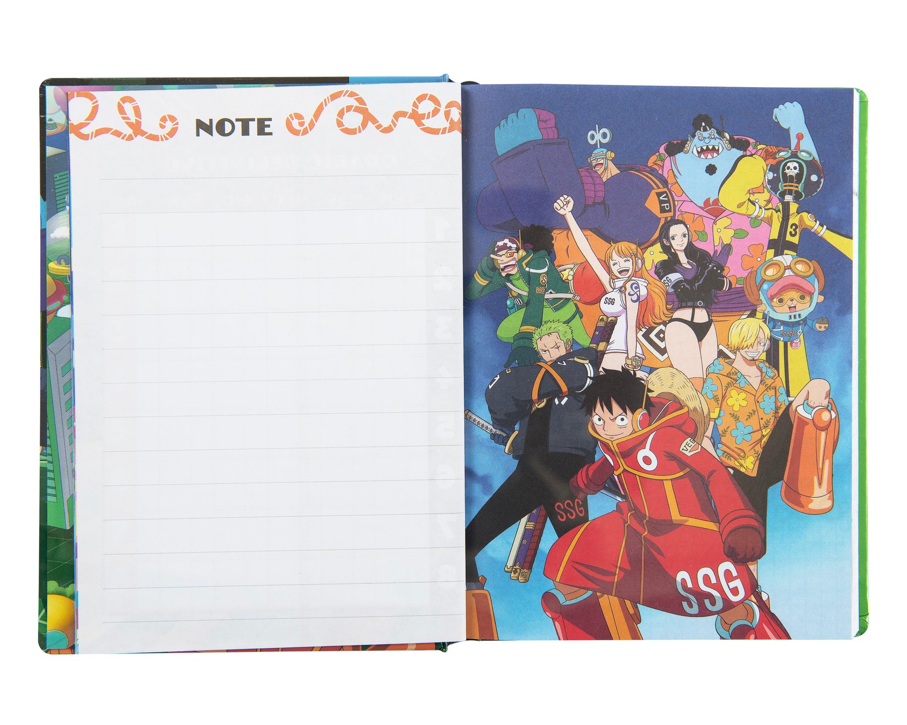 La copertina rigida e imbottita, con dimensioni di 13x17.8 cm, non solo protegge le preziose 320 pagine interne, ma presenta anche un design vivace che cattura l'essenza avventurosa della serie One Piece. I personaggi iconici dell'anime sono riprodotti con una stampa a colori di alta qualità, rendendo questo diario un oggetto da collezione per i veri fan.