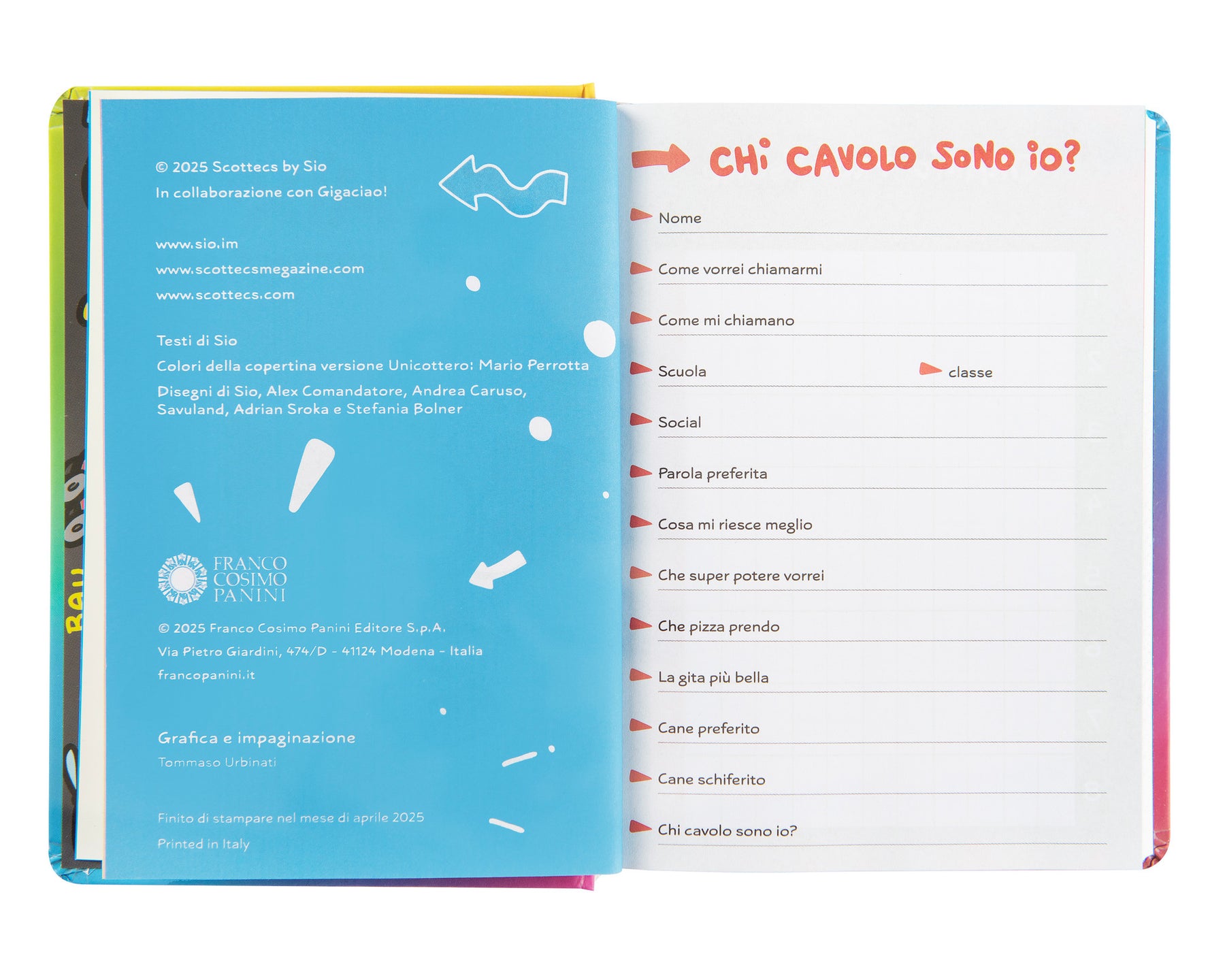 - Copertina vivace con illustrazioni dell'artista Simone Albrigi (Sio)