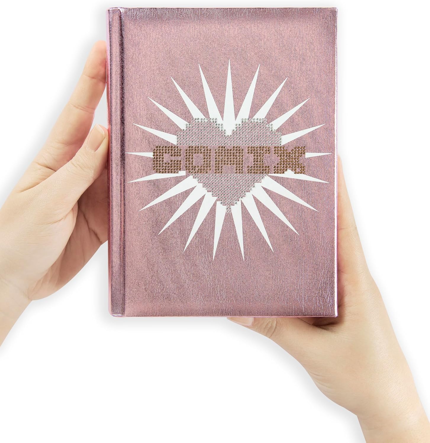- Copertina rigida in rosa con dettagli brillanti