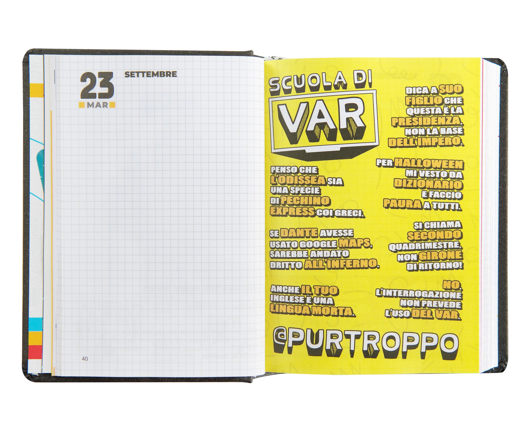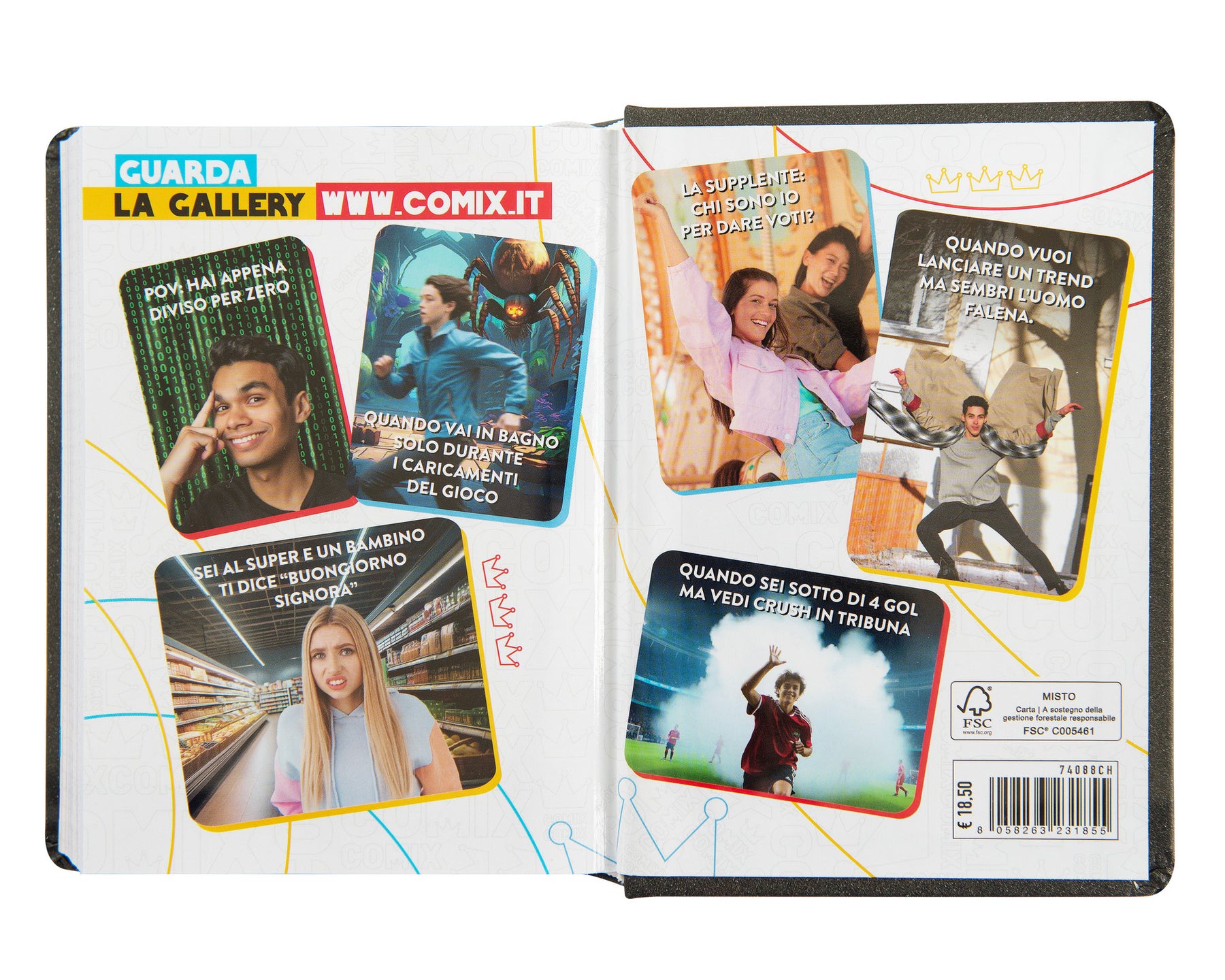 L'interno del diario è stato accuratamente progettato per soddisfare le esigenze degli studenti moderni. Le pagine offrono ampio spazio per annotare compiti, scadenze e appuntamenti importanti, permettendo una gestione efficace del tempo e delle attività scolastiche. Inoltre, il Diario Comix è arricchito con contenuti divertenti, come battute, meme, fumetti e giochi, che rendono l'organizzazione scolastica un'esperienza piacevole e stimolante.