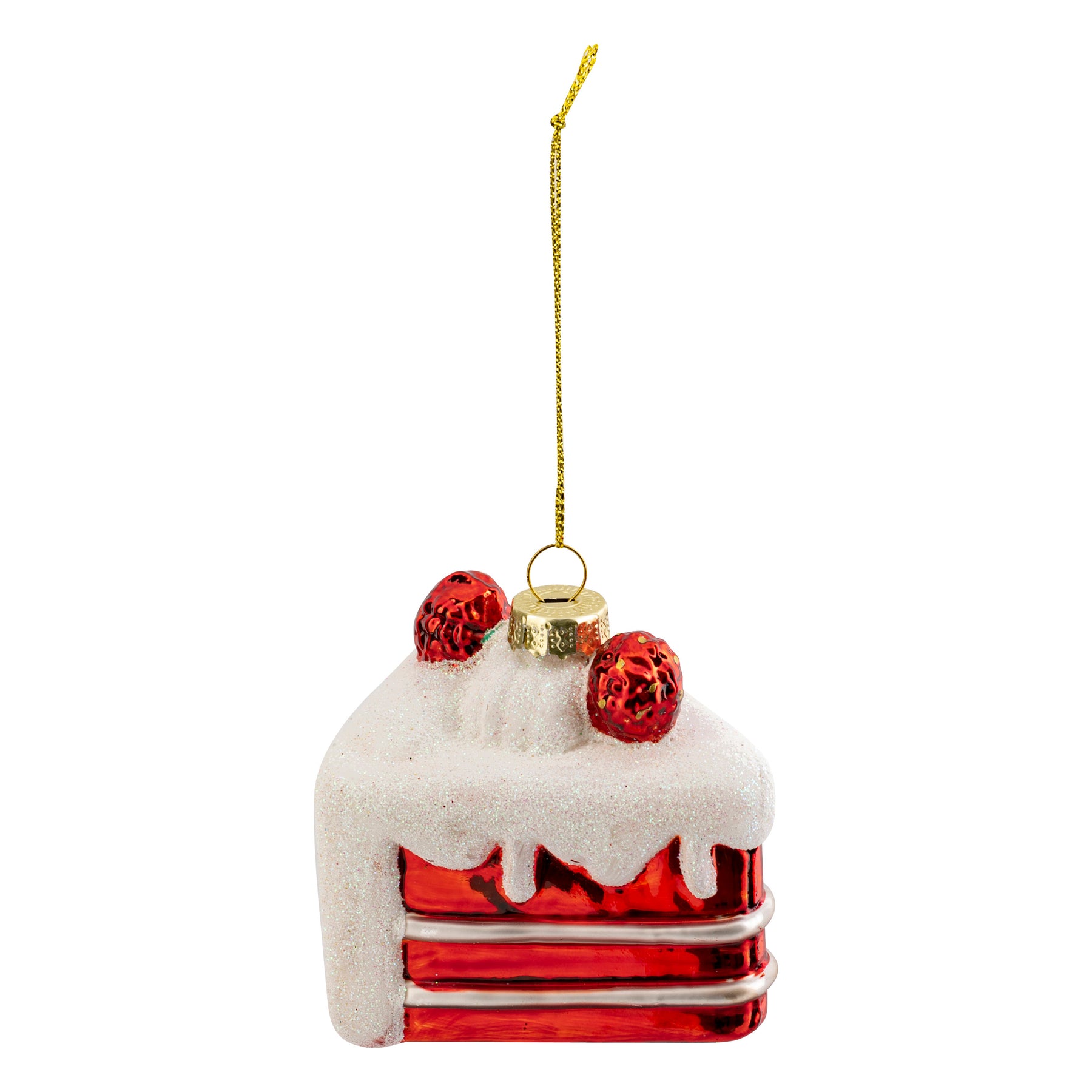 - Nome Prodotto: Fetta di Torta in Vetro Rosso e Bianco con Gancio