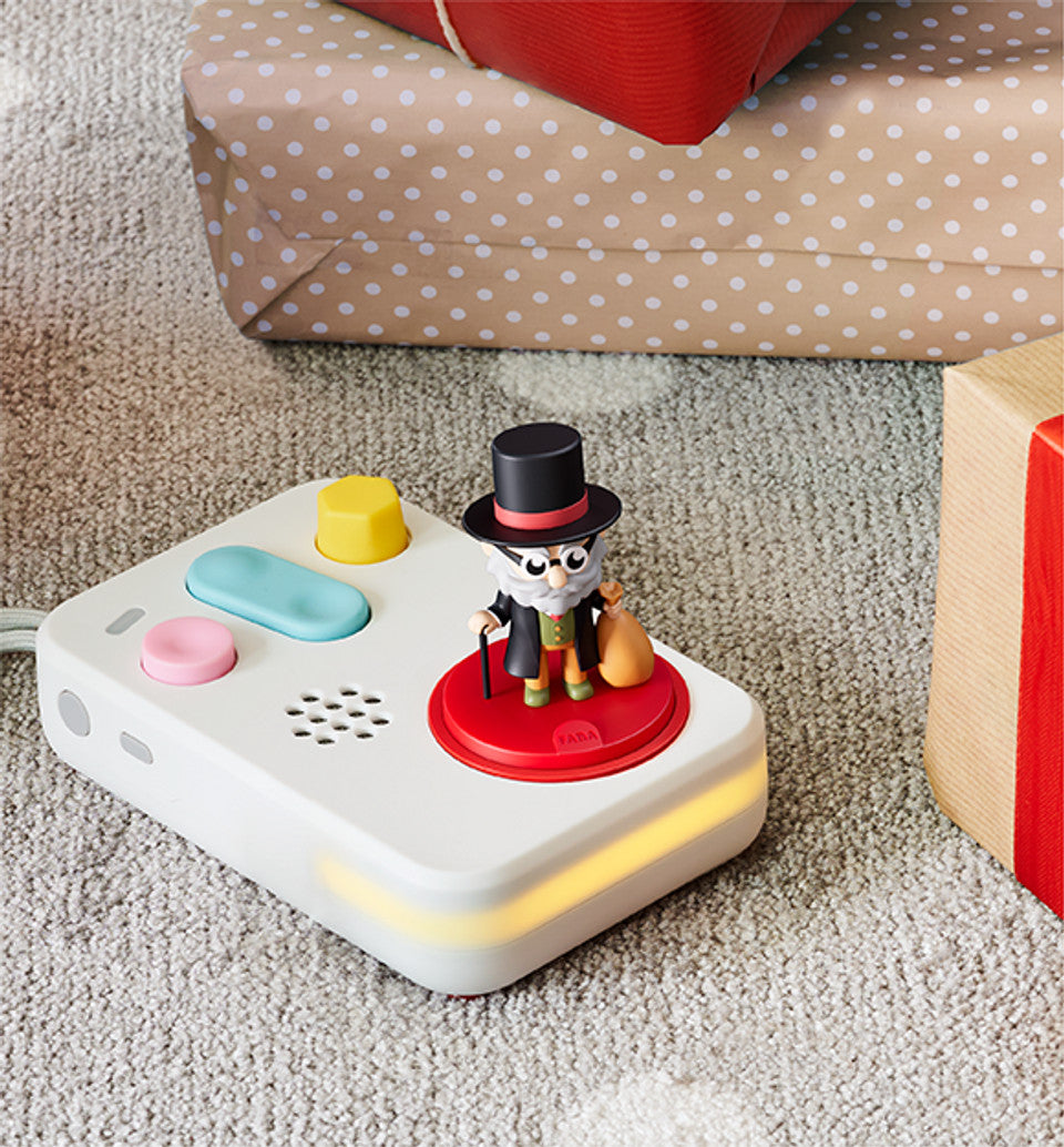 Il Faba Personaggio Sonoro Le Fiabe di Natale non è solo un dispositivo audio, ma un vero e proprio compagno di avventure. Realizzato in plastica certificata atossica, garantisce la massima sicurezza per i tuoi bambini. Il design colorato e vivace, con il nero del cilindro, il verde della giacca e il rosso della base, cattura immediatamente l'attenzione dei più piccoli. La superficie liscia e i dettagli curati, come la barba grigia e gli occhiali rotondi, rendono questo personaggio sonoro irresistibile. La sua base rotonda assicura stabilità, permettendo ai bambini di maneggiarlo facilmente. Questo Faba è progettato per essere intuitivo e semplice da usare, senza elementi di chiusura complessi o hardware difficile da gestire, rendendolo perfetto anche per i bambini più piccoli.