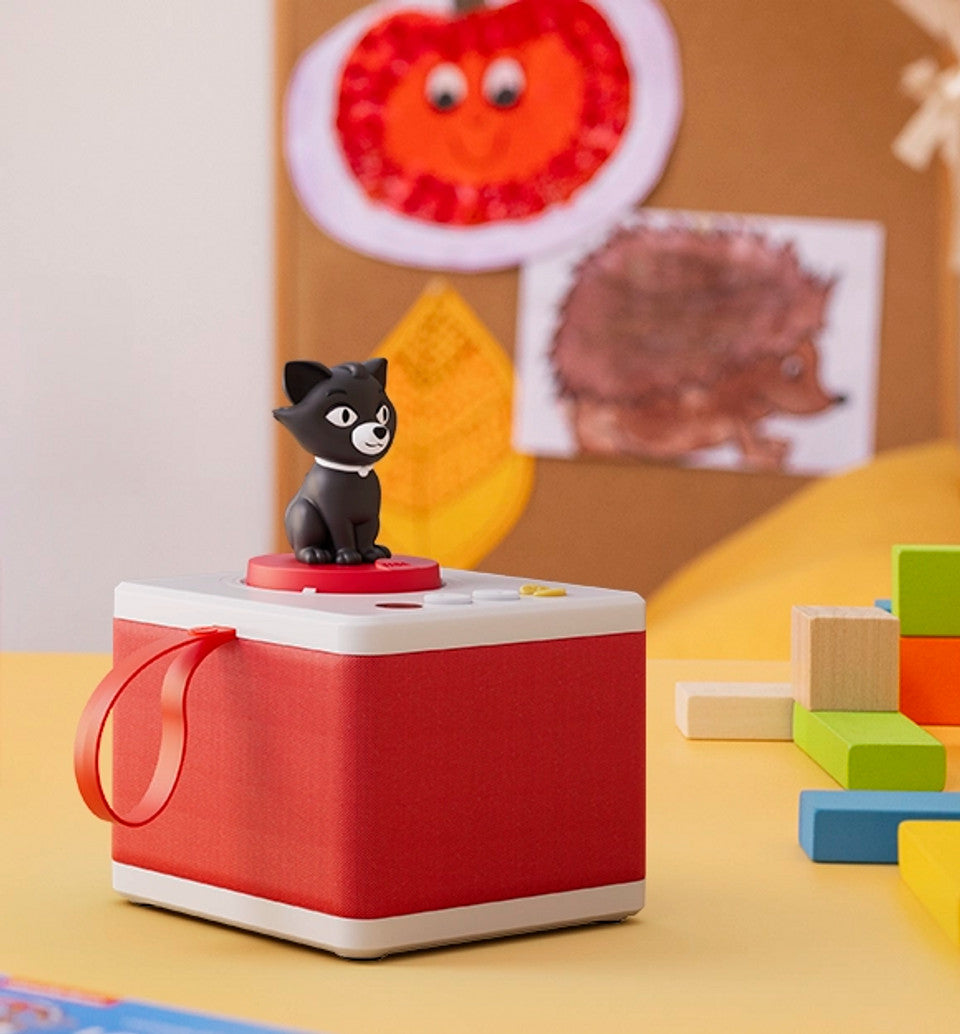 Il Gatto Nero di FABA Musica Maestro! è un vero capolavoro di design. La sua base rotonda di colore rosso, abbinata alla figura stilizzata del gatto, crea un contrasto visivo irresistibile per i bambini. Gli occhi grandi e il sorriso amichevole del gatto trasmettono un senso di gioia e sicurezza, invitando i bambini a interagire con il dispositivo. La superficie liscia e lucida, con dettagli ben definiti, evidenzia la cura e l'attenzione ai particolari che caratterizzano i prodotti FABA.