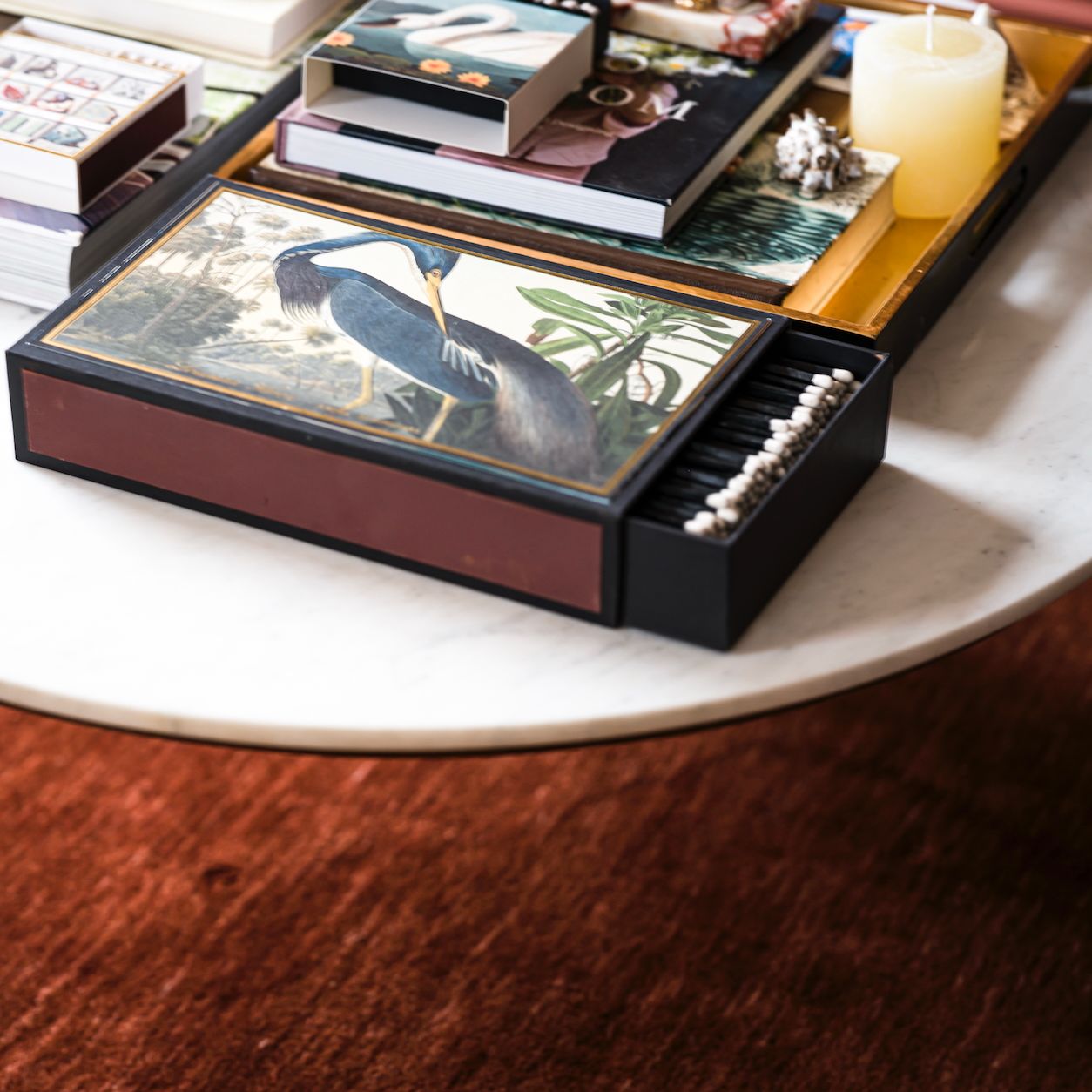 La superficie liscia e la finitura opaca della scatola esaltano l'illustrazione dell'airone della Louisiana, creando un effetto visivo di grande impatto. Il marchio THE ARCHIVIST è ben visibile, a testimonianza della qualità e dell'originalità del prodotto. Tuttavia, è importante ricordare che, essendo realizzati con materiali naturali, i fiammiferi potrebbero presentare piccole imperfezioni strutturali, che non ne compromettono la funzionalità ma ne accentuano il carattere artigianale. Accendili con cautela, lontano dal viso e da materiali infiammabili, per goderti in sicurezza la loro bellezza e funzionalità.