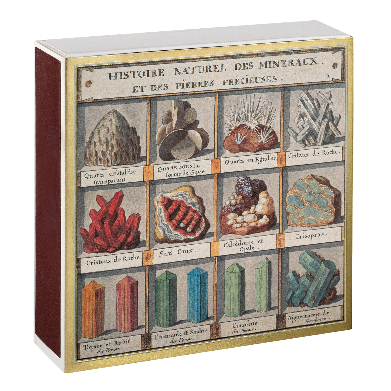 - Design della Scatola: Quadrato con Illustrazioni di Minerali