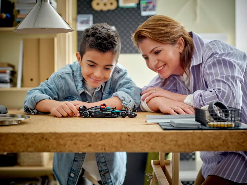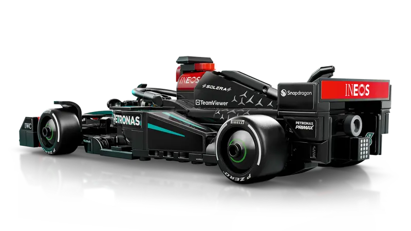 Il set LEGO Auto da Corsa Mercedes-AMG F1® W15 non è un semplice giocattolo, ma un'esperienza di costruzione che stimola la creatività e l'attenzione ai dettagli. Ogni componente è stato progettato per replicare fedelmente le caratteristiche distintive della vettura originale, dalle linee aerodinamiche alla livrea accattivante. I colori predominanti del nero, verde e rosso, tipici del team Mercedes-AMG PETRONAS, sono riprodotti con precisione, così come gli adesivi degli sponsor, che conferiscono al modello un aspetto autentico e realistico. La qualità costruttiva è evidente nella cura dei particolari, come le sospensioni a quadrilatero e gli pneumatici posteriori più larghi con la stampa “Pirelli”, che aggiungono un ulteriore livello di realismo.
