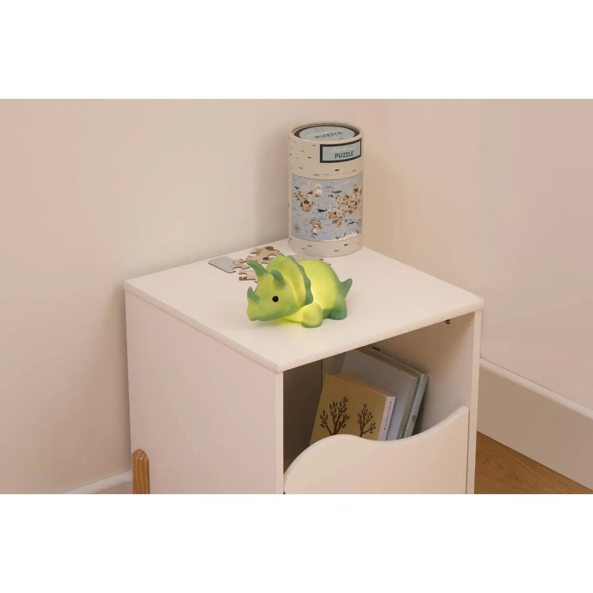 La Giustacchini Lucina Notte Triceratopo è pensata per essere pratica e funzionale in ogni situazione. Alimentata da tre batterie (non incluse), è completamente portatile e può essere facilmente spostata da una stanza all'altra o portata con sé in viaggio. Il tipo di interruttore meccanico la rende facile da utilizzare anche per i bambini più piccoli, che potranno accendere e spegnere la luce in autonomia.