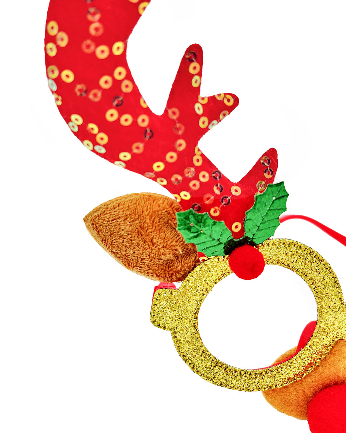 Ogni dettaglio degli Occhiali Renna Multicolor è stato curato con la massima attenzione per garantire un prodotto di alta qualità e dal design inconfondibile. La combinazione di colori vivaci, come il rosso, il verde e l'oro, crea un effetto visivo accattivante e festoso. Le corna della renna, decorate con paillettes rosse, brillano ad ogni movimento, catturando la luce e diffondendo un'atmosfera magica. La montatura dorata glitterata aggiunge un tocco di eleganza e raffinatezza, mentre il naso a pompon rosso e le orecchie in materiale morbido e peloso rendono questi occhiali irresistibilmente divertenti e piacevoli al tatto. La struttura in plastica leggera assicura un comfort ottimale, permettendoti di indossare gli occhiali per ore senza alcun fastidio.