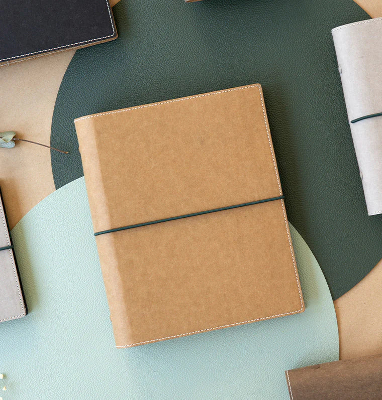 Questo organizer beige non è solo un accessorio di stile, ma un vero e proprio strumento per pianificare le tue attività in modo efficiente e responsabile. La copertina, realizzata al 100% in fibra di cellulosa vegan, è resistente e piacevole al tatto, mentre il rivestimento waterproof protegge da macchie e umidità, garantendo una lunga durata nel tempo. Scegliere l'A5 Eco Essential significa fare una scelta consapevole per l'ambiente, senza rinunciare alla qualità e alla praticità.