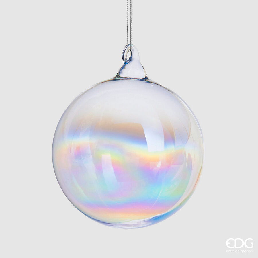 Realizzata con maestria artigianale, ogni sfera decorativa è unica, grazie alle sfumature iridescenti che la caratterizzano. I riflessi di blu, verde e rosa danzano sulla superficie liscia del vetro iridescente, creando un effetto cangiante che incanta lo sguardo. Che la collochi su una mensola, su un tavolo o la appenda come decorazione, la Sfera Iride sarà sempre un punto focale, un richiamo visivo che cattura l'attenzione e suscita ammirazione.