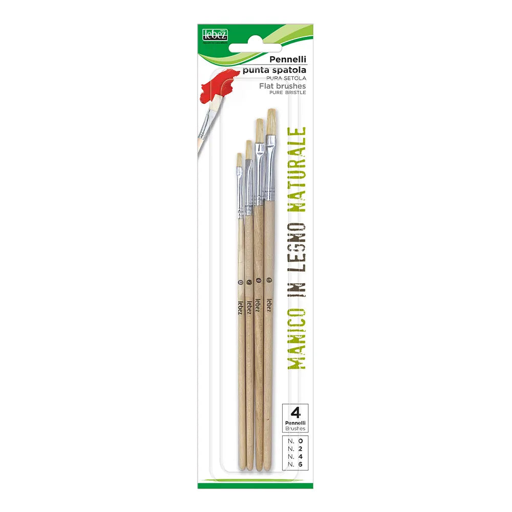 LEBEZ Set 4 Pennelli Setola Punta Piatta per Pittura Artistica