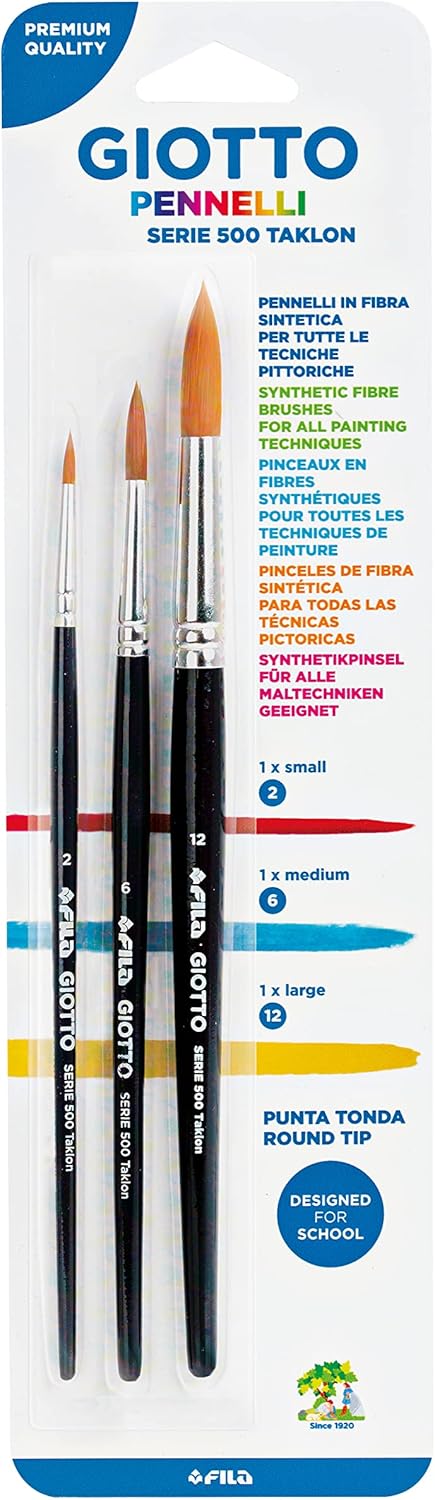 GIOTTO Taklon 500: Set di 3 Pennelli a Punta Tonda in Fibra Sintetica