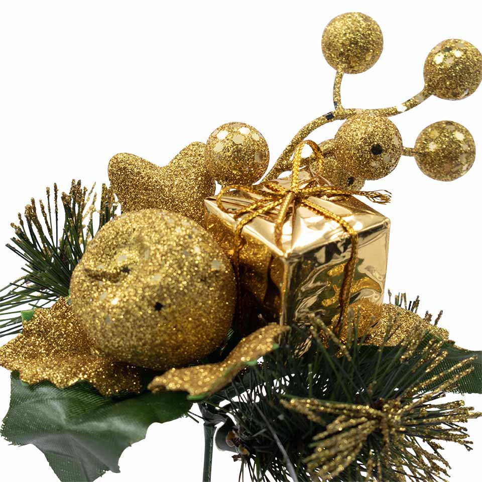 EDG Pick Decorativo Natalizio Mela e Bacche Oro Glitter Elegante 18 cm - Raffinatezza per le Tue Decorazioni