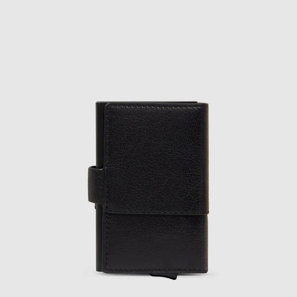 Il Porta Carte di Credito Piquadro Solm con RFID rappresenta la perfetta sintesi tra design raffinato e funzionalità avanzata. Questo accessorio premium in metallo e pelle nera è stato progettato per professionisti esigenti che non vogliono rinunciare a stile e sicurezza. Con la sua protezione RFID integrata, garantisce la massima sicurezza contro le scansioni non autorizzate, mentre il design minimalista della linea Solm esprime un'estetica autentica e decisa.