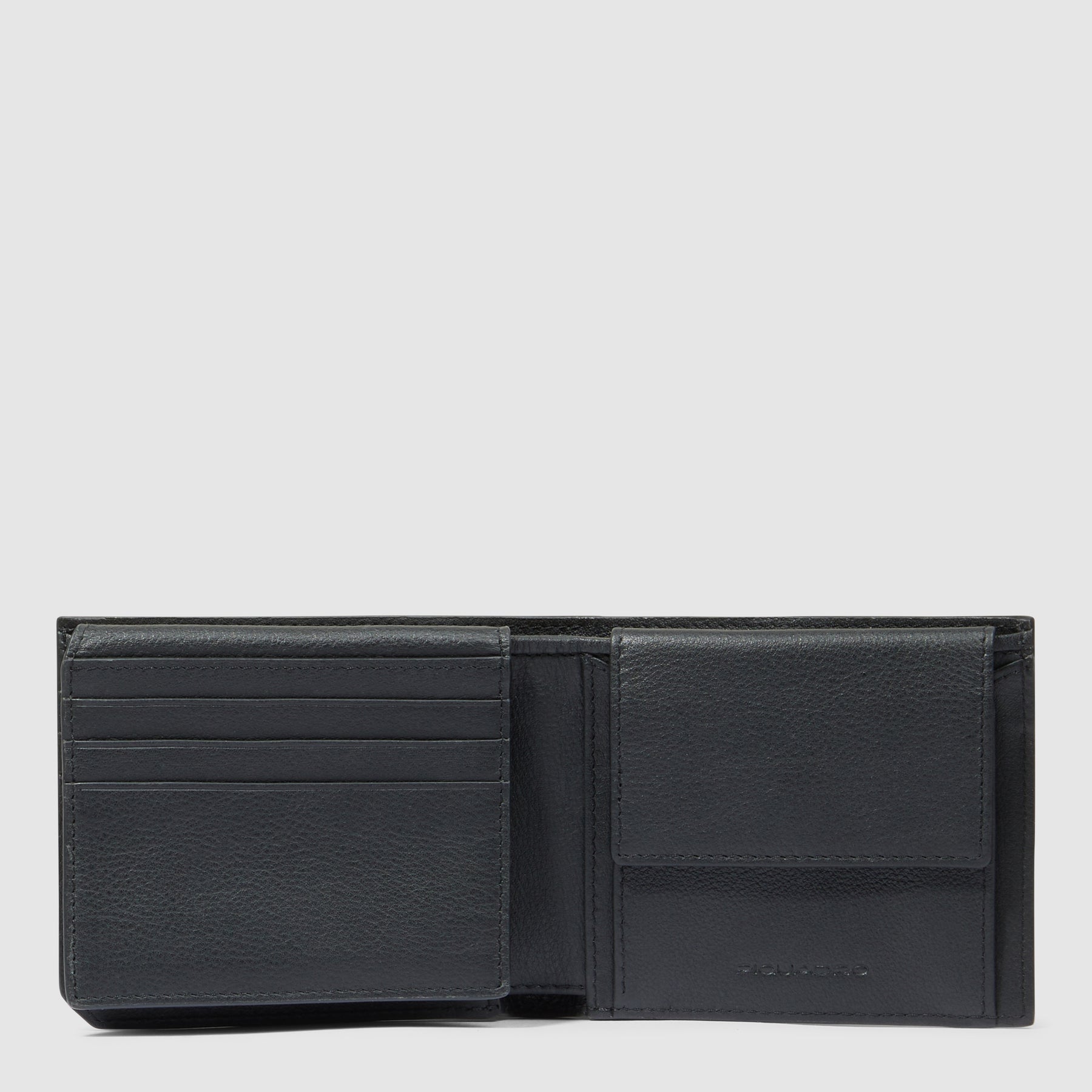 Il design minimalista e pulito del Piquadro Russel lo rende un accessorio versatile, adatto sia per l'uso quotidiano che per le occasioni speciali. La pelle di vitello di alta qualità, con la sua grana fine ottenuta attraverso un processo di goffratura e una morbida bottalatura, conferisce al portafoglio una finitura soft touch estremamente piacevole al tatto. Gli accessori in metallo con finitura nera aggiungono un tocco di eleganza e modernità.