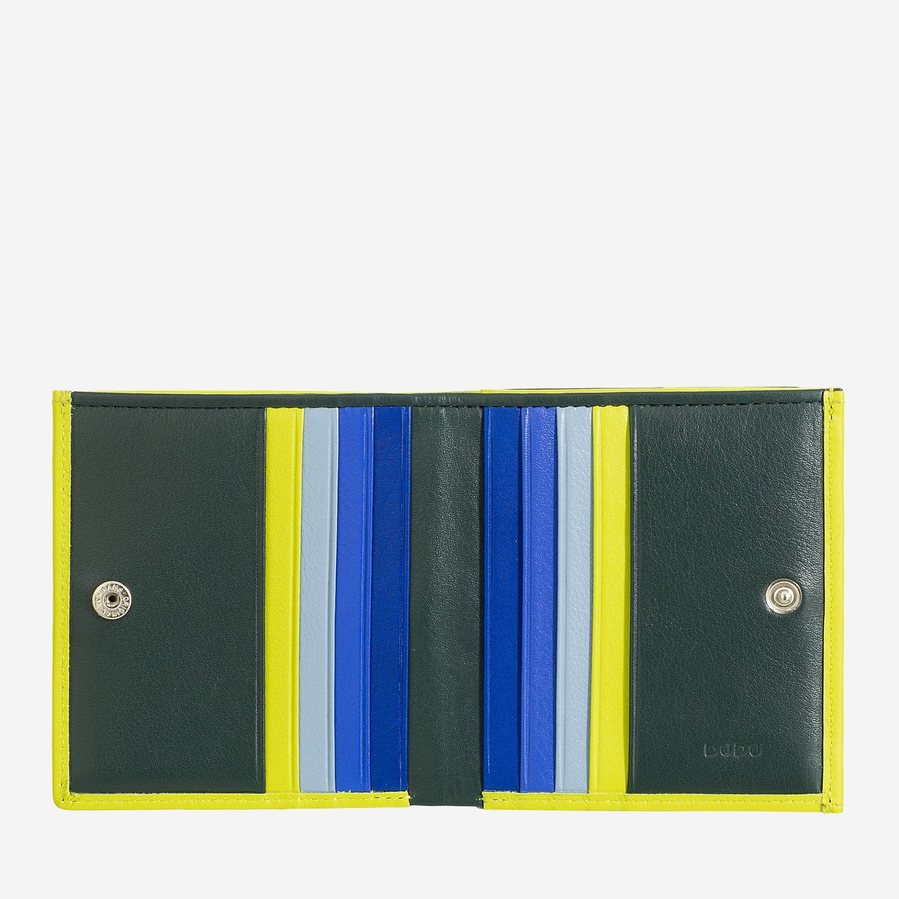 Il Dudubags Flavio si distingue per la sua combinazione di colori audace e raffinata. La parte superiore in verde scuro contrasta splendidamente con il giallo brillante della parte inferiore, creando un effetto visivo accattivante e originale. La pelle di vitello morbida al tatto conferisce una sensazione di lusso e comfort, mentre le cuciture ben rifinite testimoniano l'attenzione ai dettagli e la cura nella realizzazione. Questo portafoglio uomo è progettato per durare nel tempo, mantenendo intatta la sua bellezza e funzionalità.