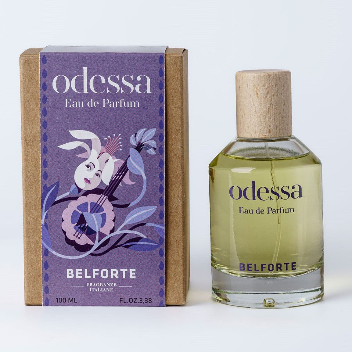 - Etichetta Frontale: Bianca Con Scritte Nere Indicanti "Odessa" E "Eau De Parfum 100ml"