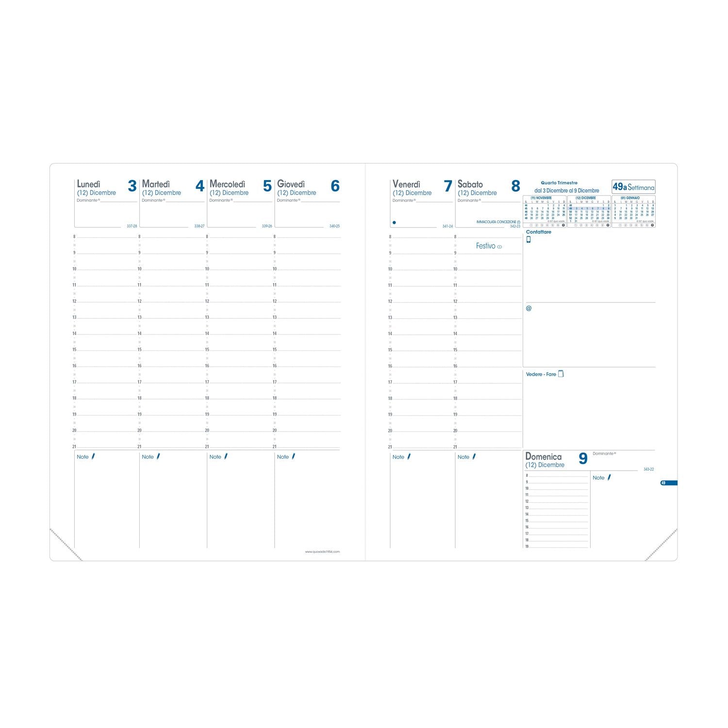 La caratteristica principale di questa ricarica agenda è la sua impaginazione settimanale. Ogni settimana è presentata su due pagine, offrendo una visione d'insieme chiara e immediata di tutti gli impegni. Questo layout permette di pianificare le attività con facilità, evitando sovrapposizioni e ottimizzando l'uso del tempo. La suddivisione in fasce orarie, con intervalli di mezz'ora, consente una gestione dettagliata degli appuntamenti, dalle 8:00 alle 21:00 o 23:00, garantendo che ogni momento della giornata sia pianificato con precisione. Per chi cerca prodotti di cartoleria di alta qualità, come la Quo Vadis Trinote 2026, può trovare un'ampia selezione al seguente link: Cartoleria.